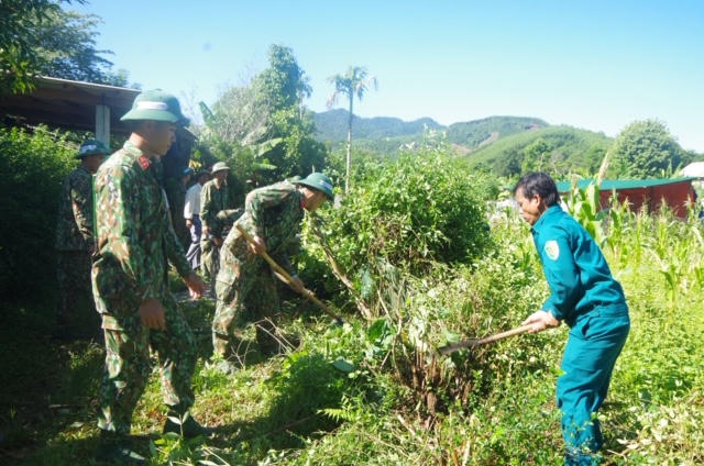 Ngay sau lễ phát động, gần 100 cán bộ, chiến sĩ Bộ CHQS tỉnh cùng với lực lượng Dân quân tự vệ, đoàn viên thanh niên và bà con nhân dân đã tiến hành ra quân dọn dẹp vệ sinh, phát quang cây xanh, bụi rậm và làm mới làm mới con đường dân sinh dài hơn 500m tại Thôn Chà Măng, xã Thượng Lộ.