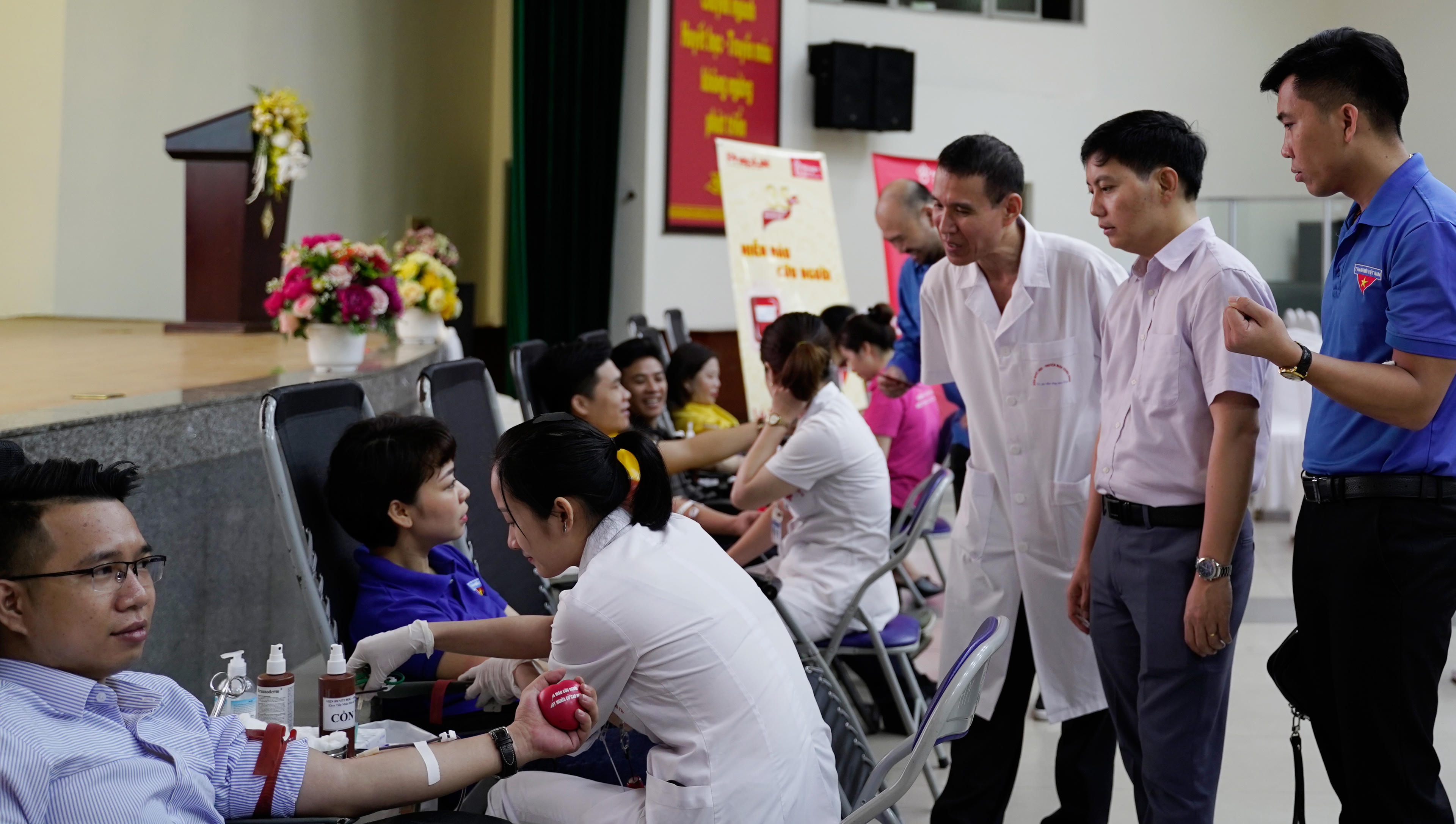 Ngay từ sáng sớm, tầng 2 khu vực hiến máu Viện Huyết học & Truyền máu Trung ương đã rộn ràng sắc đỏ của băng rôn, biểu ngữ cổ động hiến máu nhân đạo (HMNĐ) và màu áo xanh tình nguyện của cán bộ, đoàn viên thanh niên Báo Pháp luật Việt Nam. Mặc dù không phải lần đầu tiên tham gia hiến máu, nhưng các cán bộ, phóng viên vẫn có chung tâm trạng hồi hộp và xúc động…