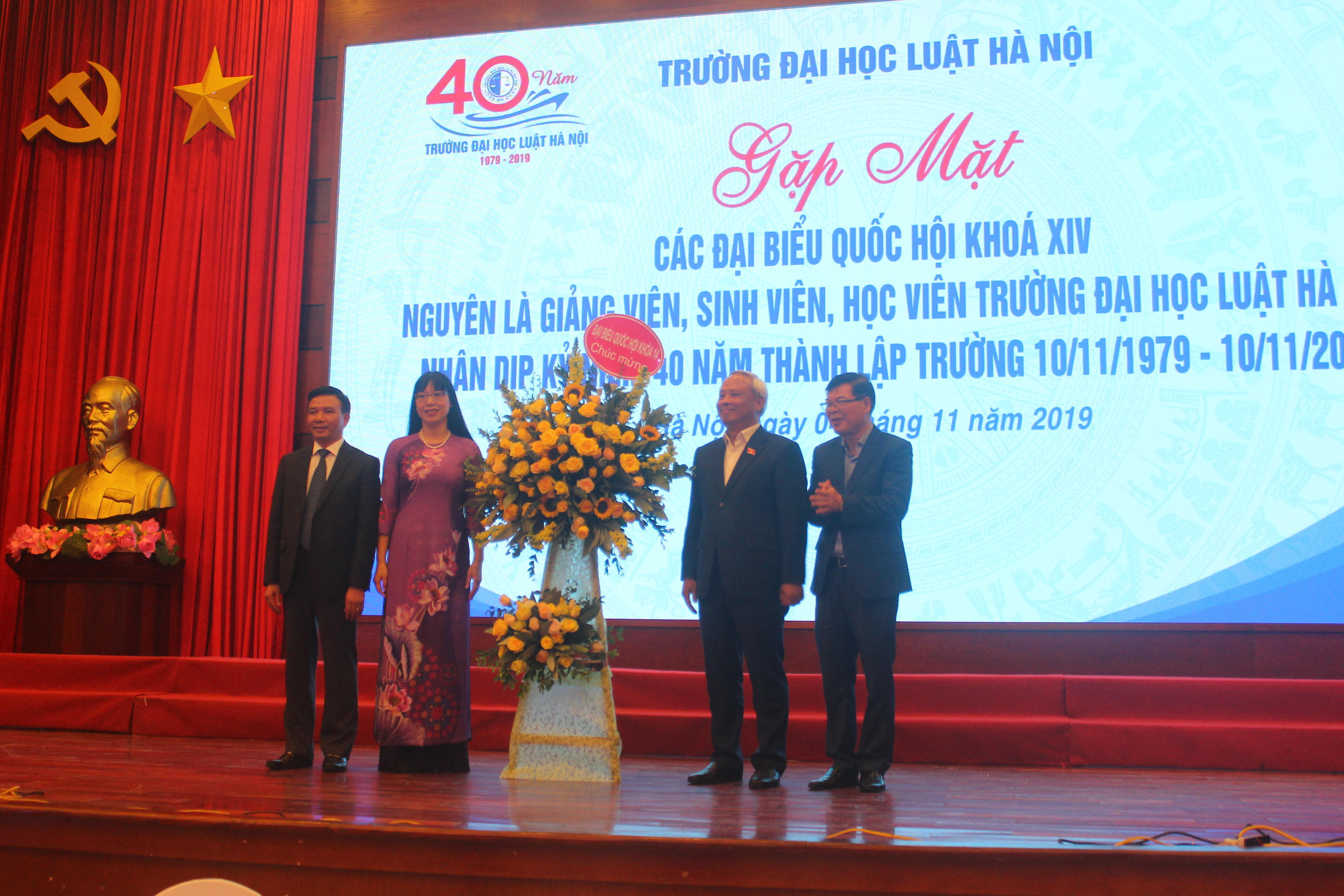 Đến dự có đồng chí Uông Chu Lưu, Ủy viên BCH Trung ương Đảng, Phó Chủ tịch Quốc hội nước CHXHCN Việt Nam; đồng chí Lê Thị Nga, Ủy viên BCH Trung ương Đảng, Chủ nhiệm Ủy ban Tư pháp của Quốc hội; đồng chí Lê Thị Thủy, Ủy viên BCH Trung ương Đảng, Bí thư Tỉnh ủy Hà Nam, ĐBQH khóa XIV. Ngoài ra còn có gần 60 ĐBQH khóa XIV trên tổng số hơn 70 ĐBQH đã từng giảng dạy, công tác, học tập tại Trường ĐH Luật Hà Nội.