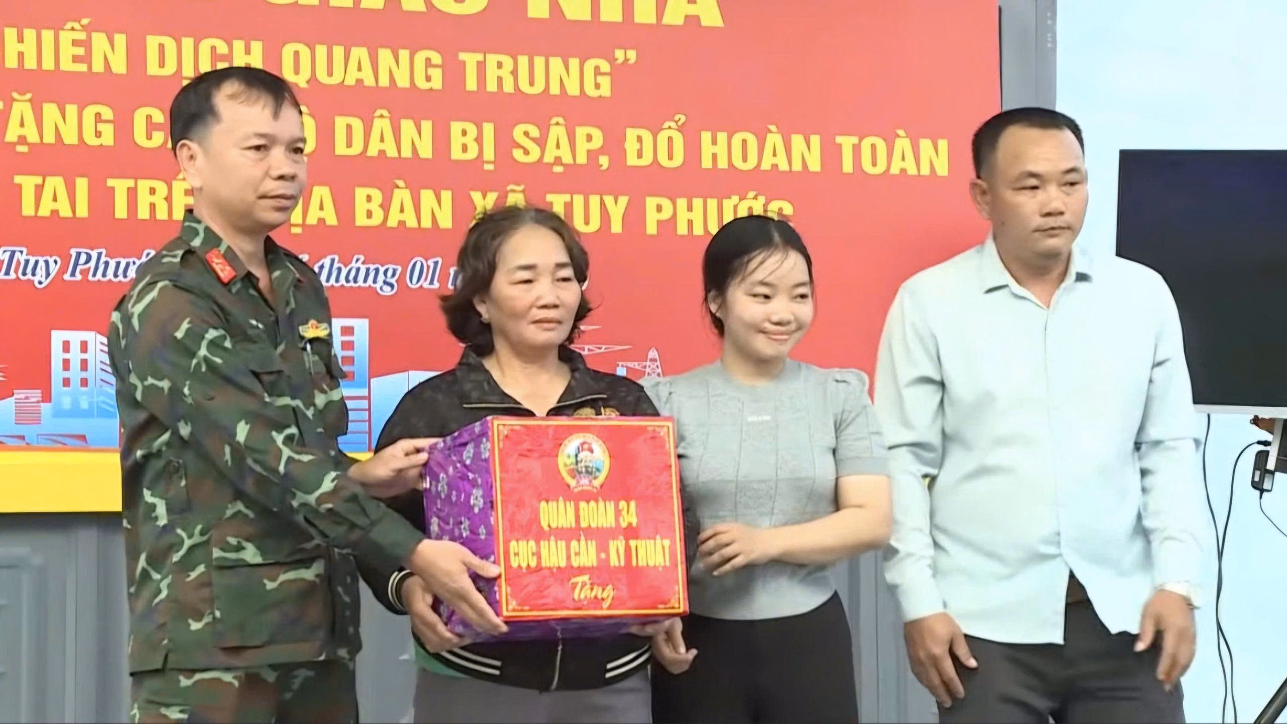 Đây là món quà mang ý nghĩa nhân văn sâu sắc, thể hiện sự quan tâm đặc biệt của Đảng, Nhà nước và Quân đội đối với nhân dân, giúp bà con “an cư lạc nghiệp”. Nhân dịp này, đại diện Cục Hậu cần - Kỹ thuật (Quân đoàn 34) và chính quyền xã Tuy Phước cũng đã trao tặng nhiều phần quà thiết thực cho hai gia đình.