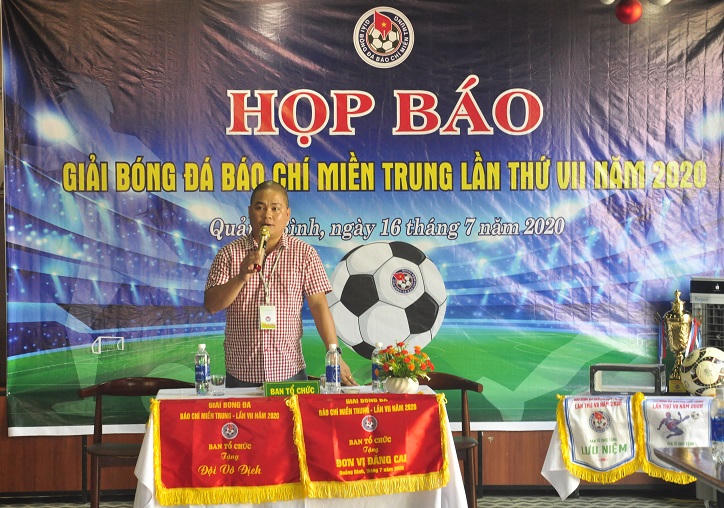 Nhà báo Lê Hữu Chính - Trưởng Ban tổ chức giới thiệu về giải đấu bóng đá đặc biệt dành cho những người làm báo khu vực miền Trung.