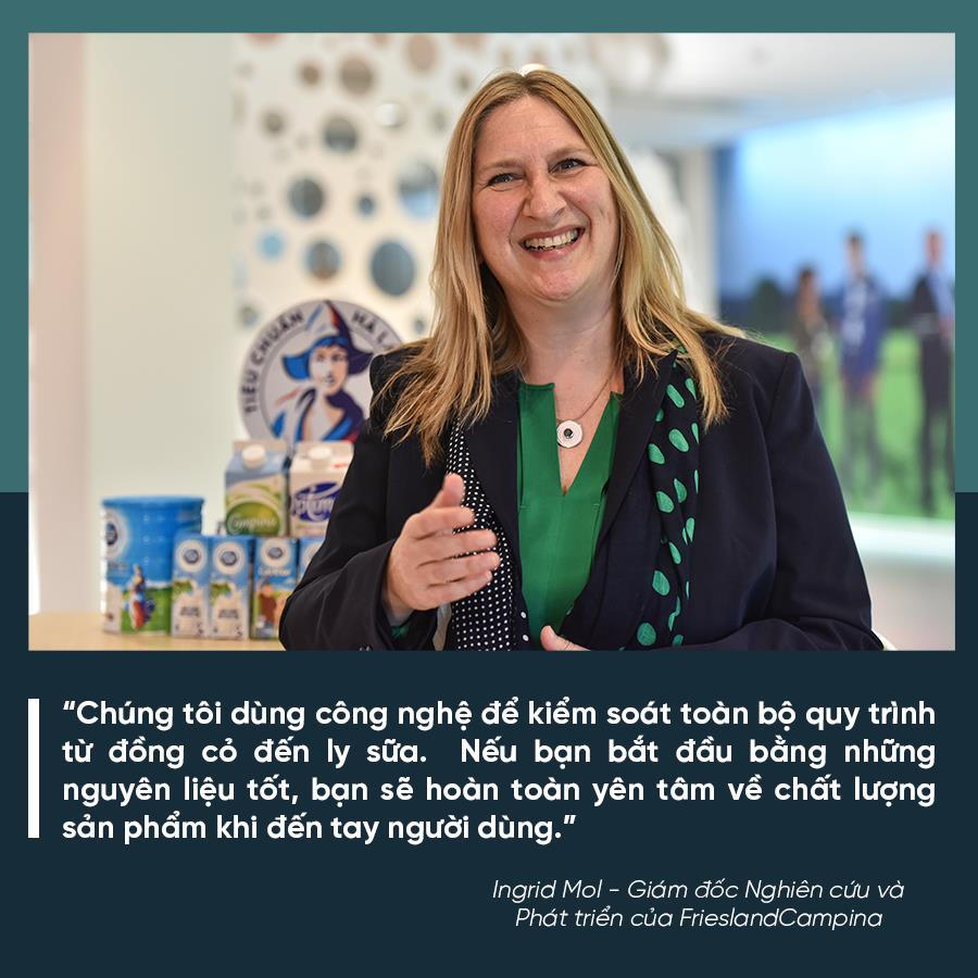 Đó là một trong những lý do bà Ingrid Mol - Giám đốc Nghiên cứu và Phát triển của FrieslandCampina tự hào khẳng định các sản phẩm của hãng luôn phù hợp với nhu cầu dinh dưỡng người Việt nhưng vẫn giữ chuẩn Hà Lan.
