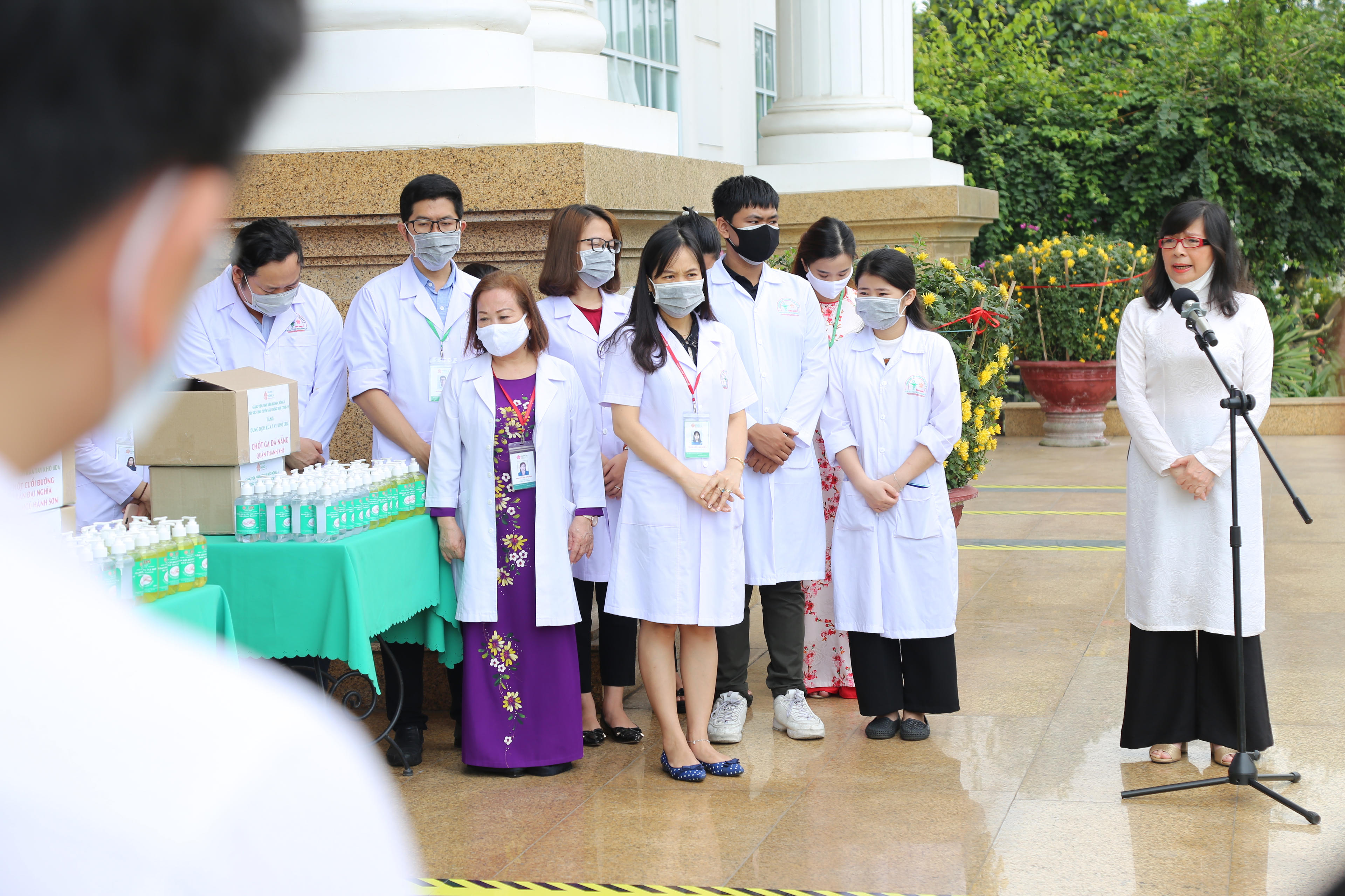 Trường cũng gửi tặng 10 chai dung dịch rửa tay khô hỗ trợ công tác sát khuẩn, phòng chống dịch bệnh Covid-19 tại Trung tâm nuôi dưỡng trẻ mồ côi TP Đà Nẵng qua Trung tâm y tế quận Ngũ Hành Sơn.