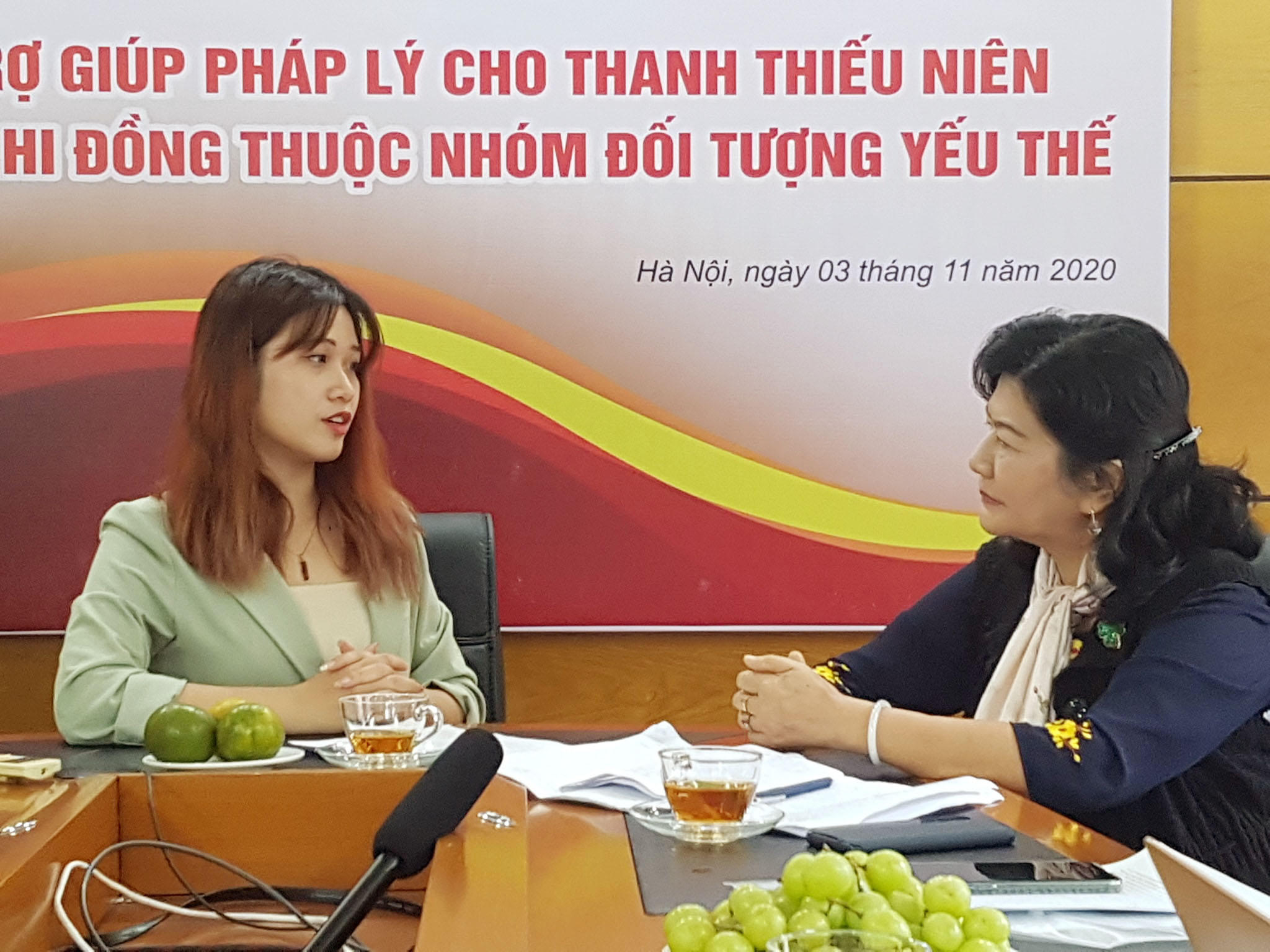 Bà Ninh Thị Hồng: Trẻ em có những đối tượng đặc trưng đặc thù khác nhau, Đối với trẻ em đang ở các trường thanh thếu niên nhi đồng, chúng ta dễ tiếp cận. Tuy nhiên, có những đối tượng tàn tật, khuyết tật, có hoàn cảnh đặc biệt như mồ côi, không nơi tương tựa, khó tiếp cận hoặc đơn vị chức năng nhà nước không tiếp cận được thì chúng tôi mong muốn những tổ chức, cá nhân tự nguyện, tổ chức chình trị - xã hội, tổ chức xã hội được cùng tham gia tiếp cận, trợ giúp. Những tổ chức này gồm những người có trình độ luật pháp tham gia với tinh thần tự nguyện, sẵn sàng kết nối tư vấn cho các cháu.