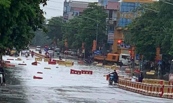 Đáng chú ý, tuyến đường Trần Nguyên Hãn giao với đường Đại lộ Hùng Vương (phường Thanh Miếu, TP Việt Trì) bị ngập sâu, các tấm chắn giải phân cách di động bằng nhựa đã trôi, nổi lềnh bềnh trên mặt nước, gây khó khăn, cản trở người tham gia giao thông và sinh hoạt đời sống người dân.
