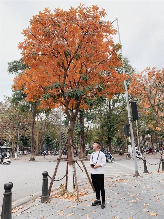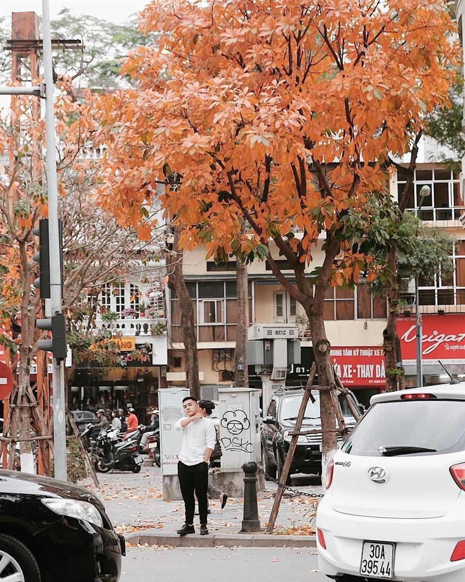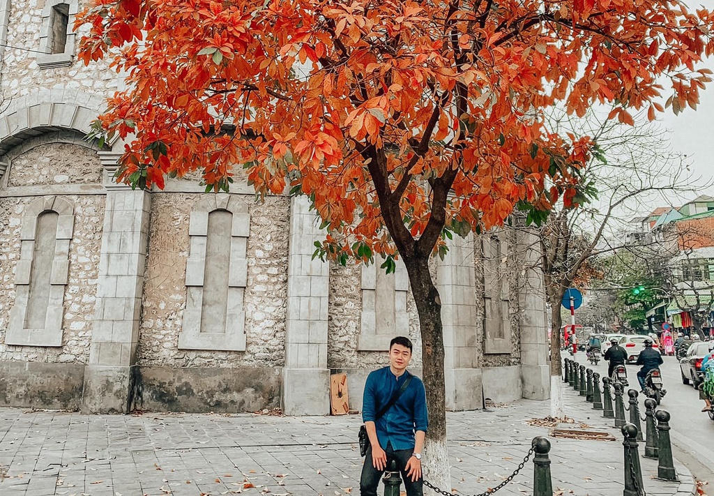 Những ngày đầu tháng 3, bốt Hàng Đậu, Hà Nội, trở thành điểm check-in thu hút giới trẻ tới sống ảo cùng cây lộc vừng thay lá đỏ rực góc trời. Tại đây, bạn có thể chụp những bức ảnh kỷ niệm đẹp tựa trời thu giữa mùa xuân. Ảnh:U.lo_. |