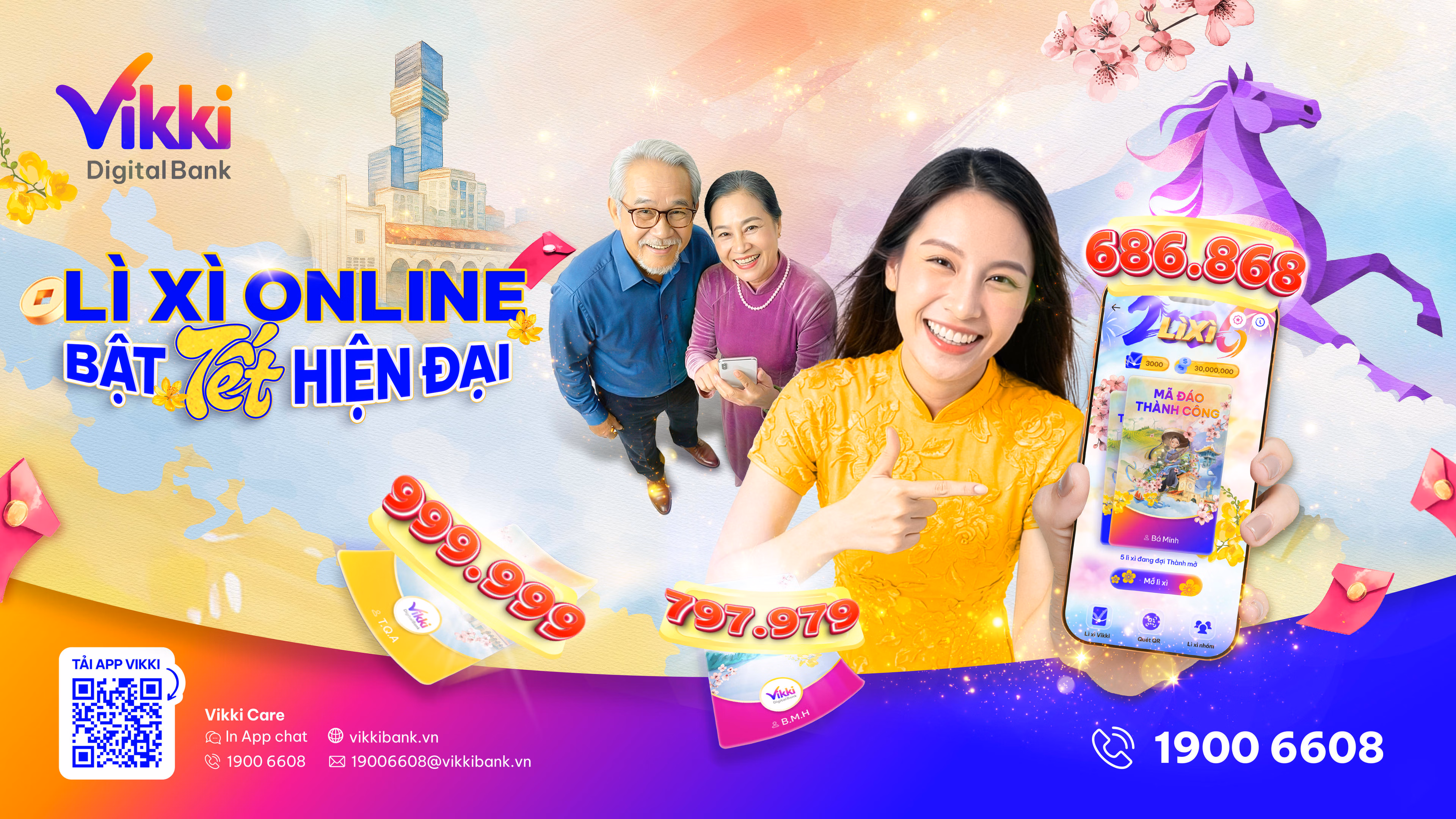 Đặc biệt, trong dịp nghỉ Tết, khách hàng gửi tiết kiệm online trên ứng dụng Vikki sẽ được nhận lì xì may mắn ngay trên app, tạo thêm niềm vui đầu năm cho người gửi tiền. Chỉ với vài thao tác trên điện thoại, khách hàng vừa có thể tích lũy sinh lời, vừa nhận quà tặng và cơ hội trúng thưởng vàng giá trị.