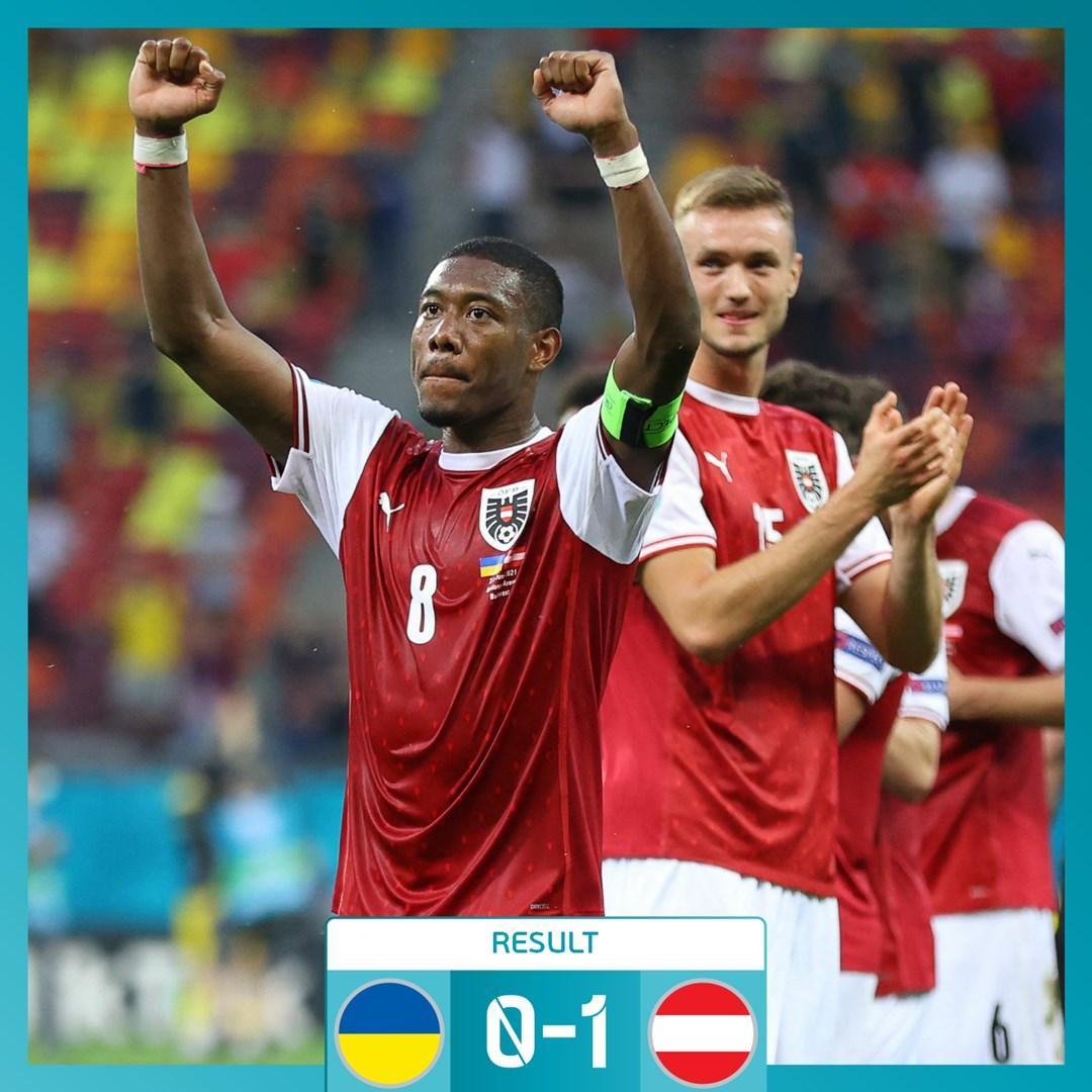 Tuy nhiên, thế trận trên sân hoàn toàn khác. Ukraine đã bất ngờ thất bại trước Áo 1-0 khiến cơ hội để vòng 1/8 của Ukraine quá mong manh. Với chiến thắng này, Áo giành vé đi tiếp với vị trí nhì bảng sau Hà Lan và sẽ chạm trán ứng viên vô địch Italia ở vòng 1/8. Trong khi đó, Ukraine vẫn phải chờ tấm vé dành cho các đội xếp thứ ba.