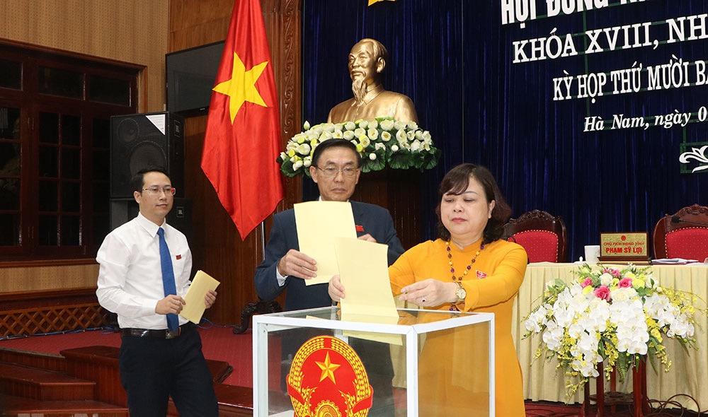 Kết quả, ông Trương Quốc Huy, Phó Bí thư Tỉnh ủy, Bí thư Thị ủy Duy Tiên đã trúng cử chức danh Chủ tịch UBND tỉnh nhiệm kỳ 2016-2021. Ông Nguyễn Anh Chức, Ủy viên BTV Tỉnh ủy, Bí thư Thành ủy, Chủ tịch HĐND thành phố Phủ Lý, trúng cử chức danh Phó Chủ tịch UBND tỉnh nhiệm kỳ 2016-2021. Các ông: Đặng Thanh Sơn, Ủy viên BTV Tỉnh ủy, Bí thư Huyện ủy, Chủ tịch HĐND huyện Bình Lục; Bùi Văn Hoàng, Ủy viên BCH Đảng bộ tỉnh, Chánh Văn phòng HĐND tỉnh đã trúng cử chức danh Phó Chủ tịch HĐND tỉnh nhiệm kỳ 2016-2021.