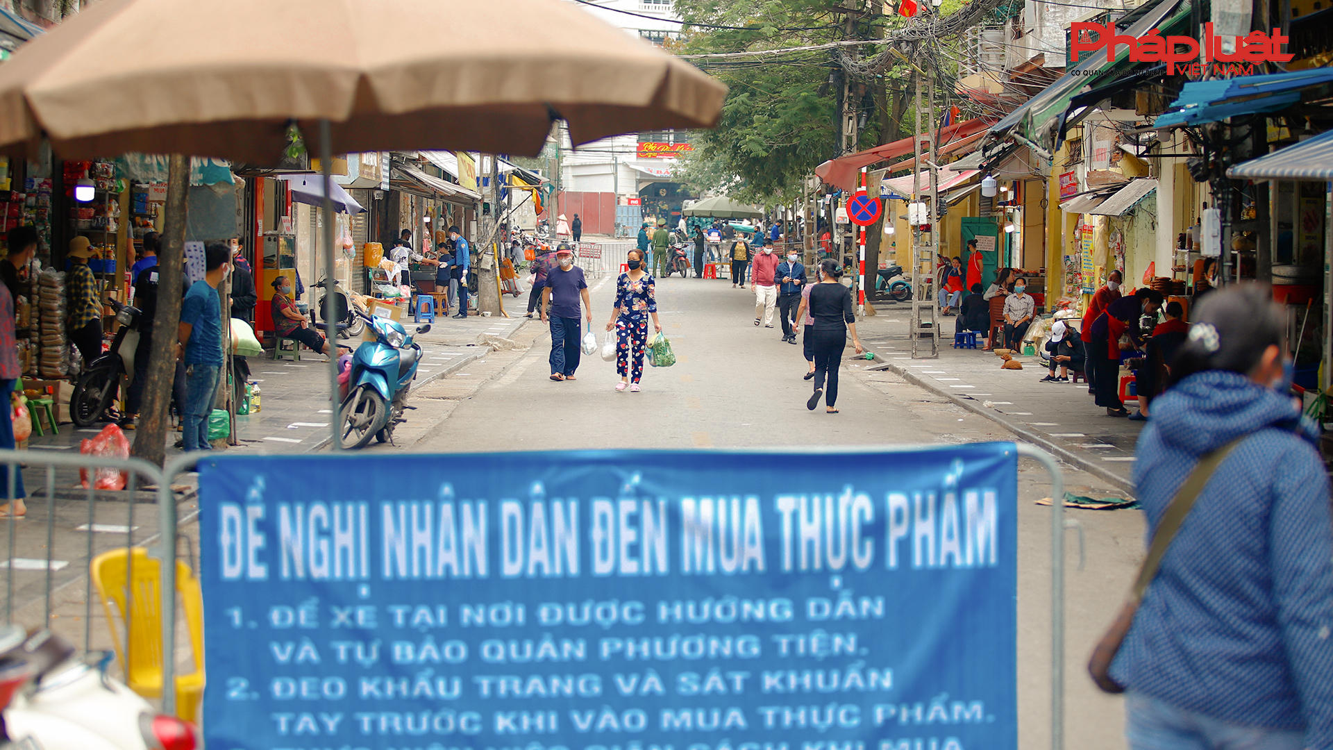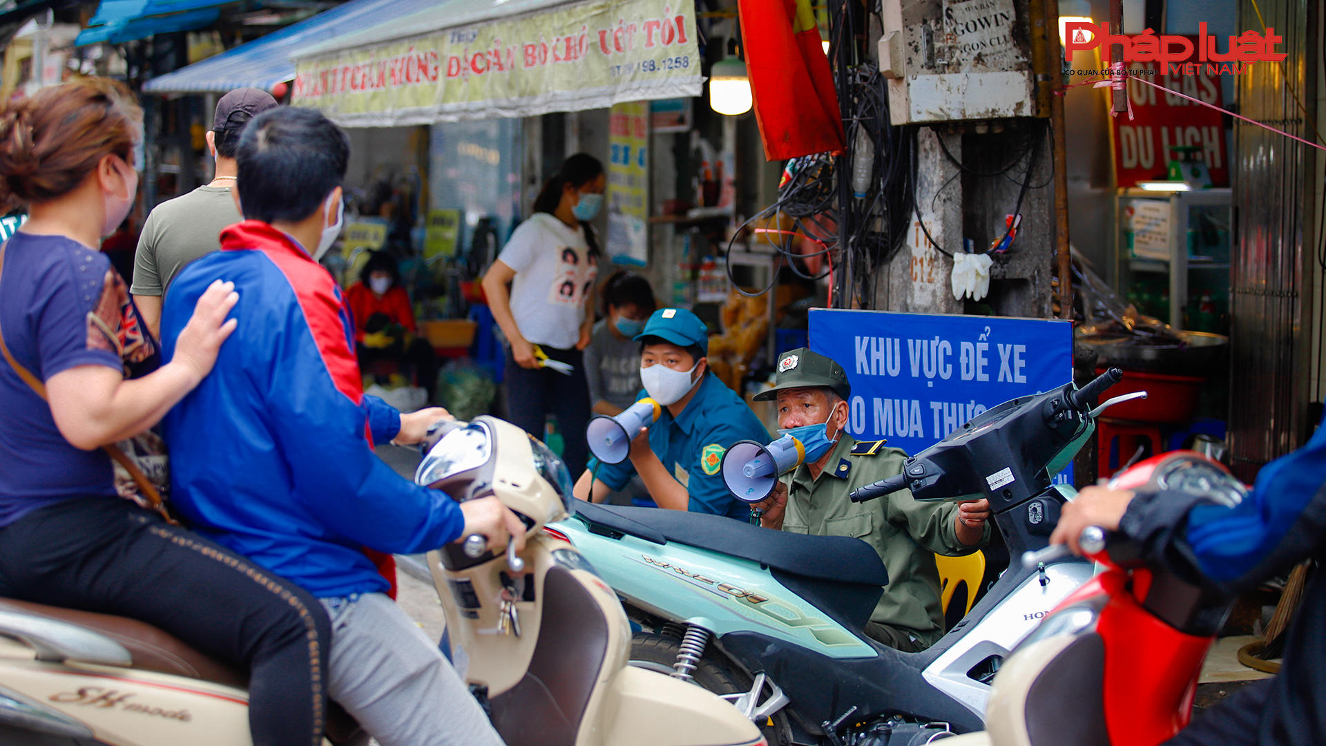 lực lượng chức năng tiếp tụcđẩy mạnh công tác tuyên truyền để người dân tự giác chấp hành quy định phòng chống dịch. Tại một chợ ở phố cổ, địa phương đưa ra sáng kiến đánh dấu vạch sơn có khoảng cách 2 m để người bán và người mua đảm bảo an toàn...