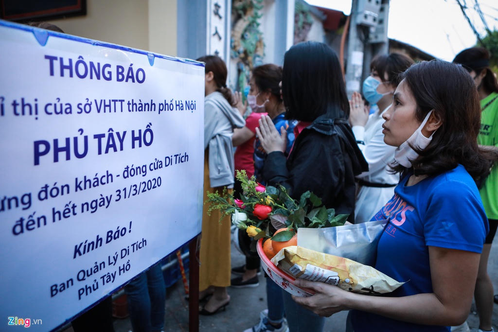 Ngay hôm 24/3 (mồng 1 tháng 3 âm lịch), người dân vẫn đi lễ mồng 1 ở Phủ Tây Hồ rất đông. Dù ở Phủ Tây Hồ đã đóng cửa các khu thờ, có biển thông báo không đón đón khách, đóng cửa di tích đến 31/3, nhưng người dân vẫn đến sân Phủ lễ vọng.