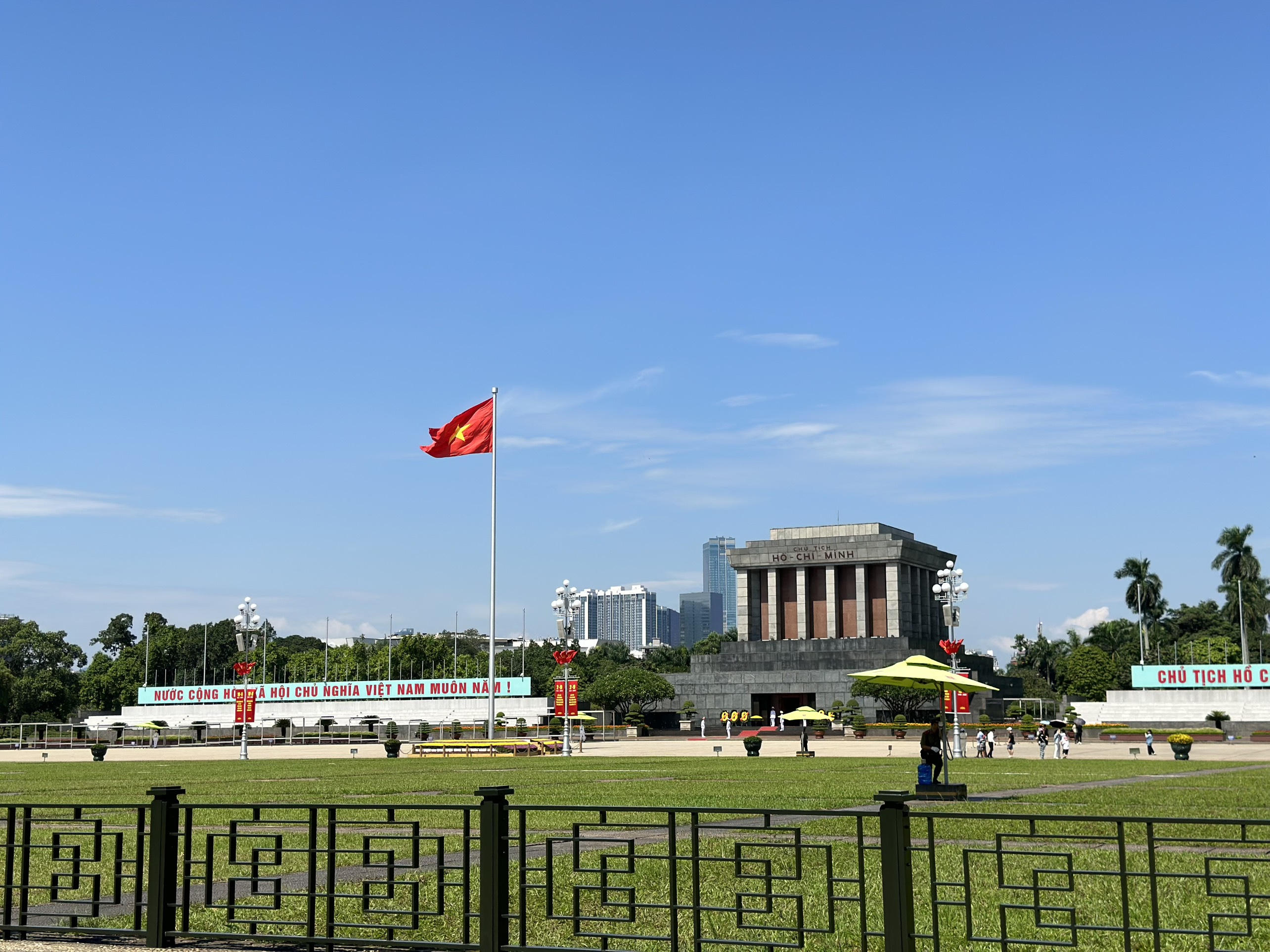 Cờ Tổ quốc tung bay tại Quảng trường Ba Đình trong nắng thu.