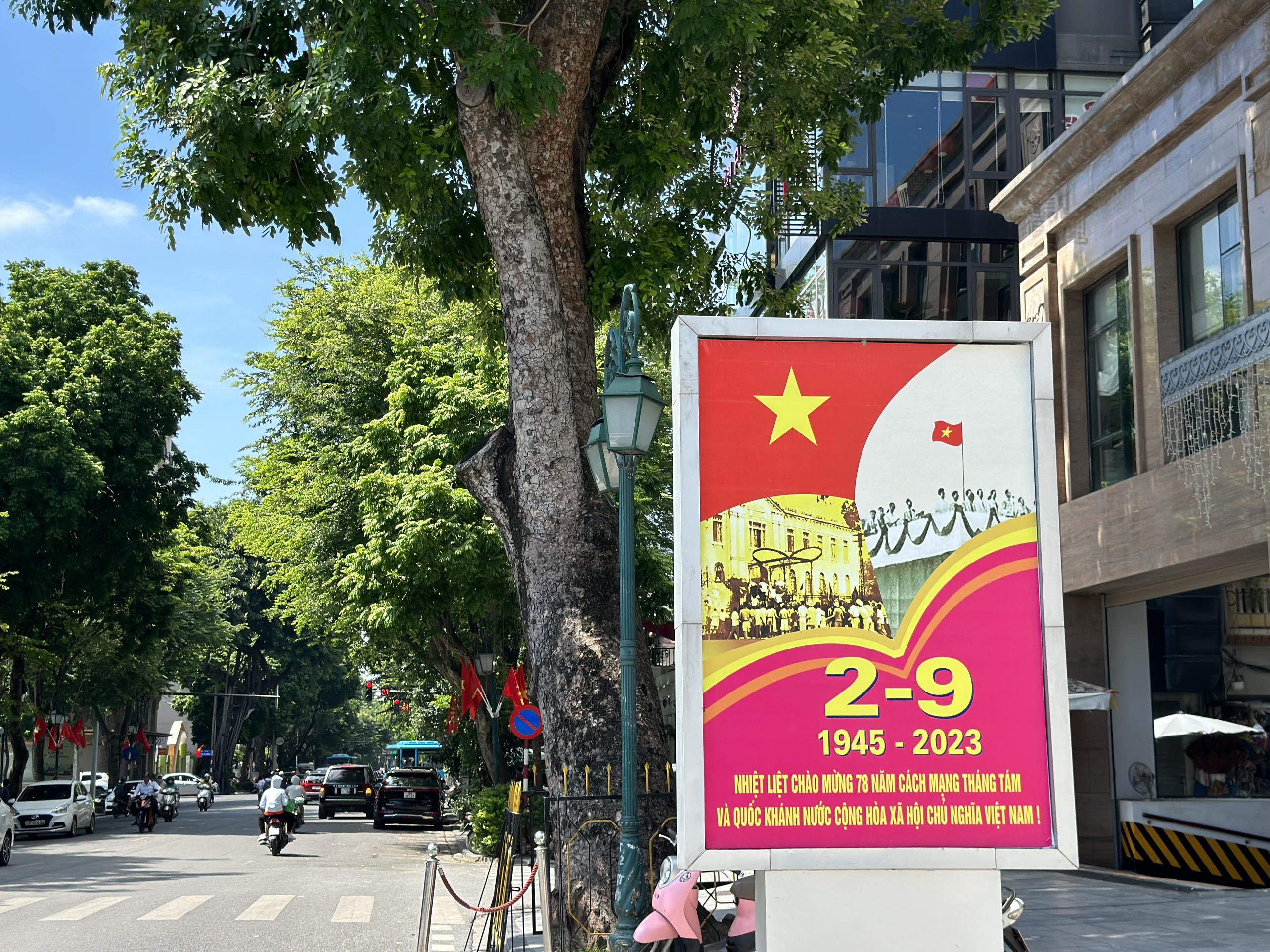 (PLVN) - Những ngày này, các con phố của Thủ đô Hà Nội đều rực rỡ màu cờ Tổ quốc, băng rôn, pano... chào mừng kỷ niệm 78 năm Cách mạng Tháng Tám và Quốc khánh 2/9.