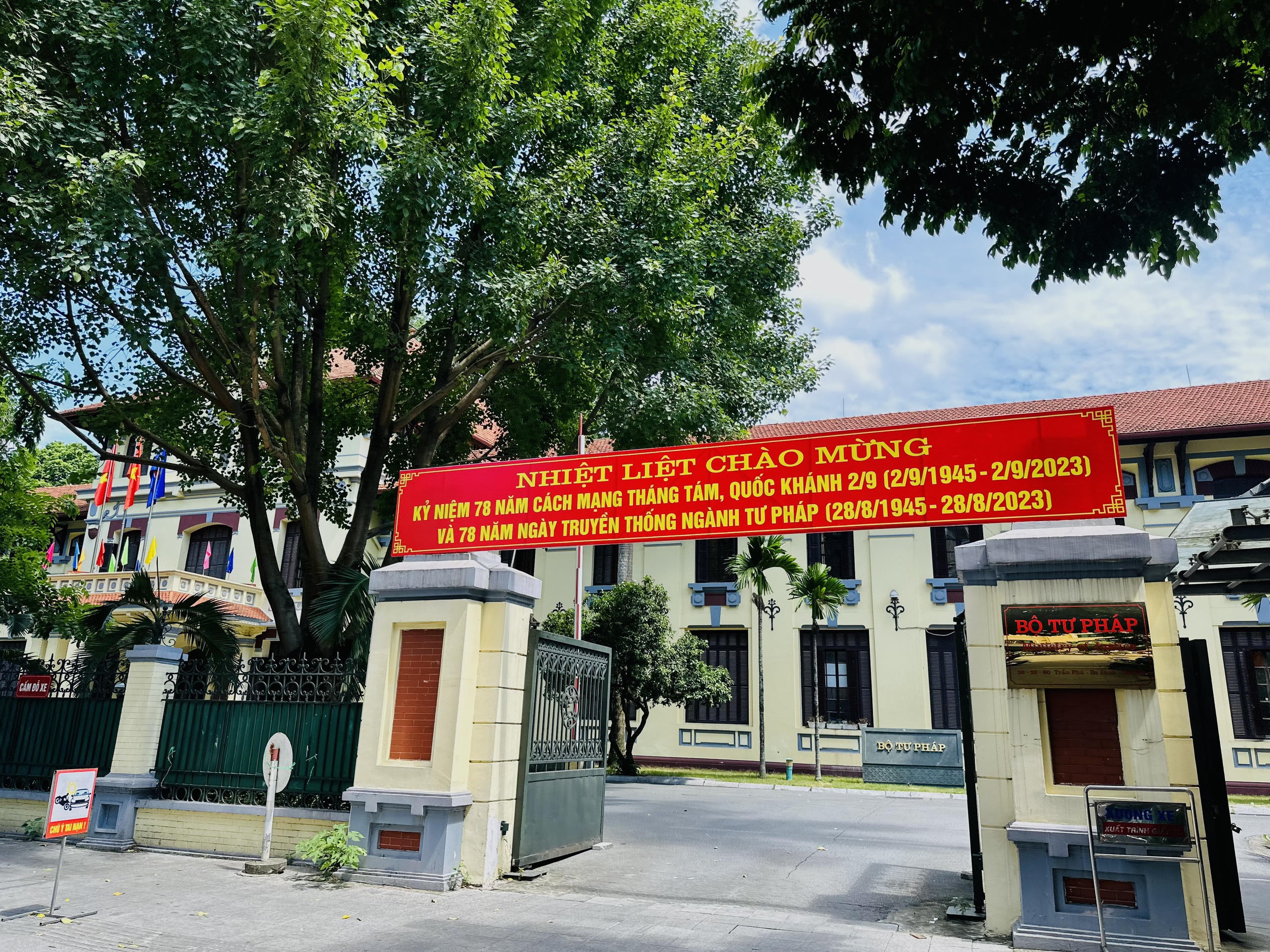 Trước cổng Bộ Tư pháp (đường Trần Phú, Ba Đình).