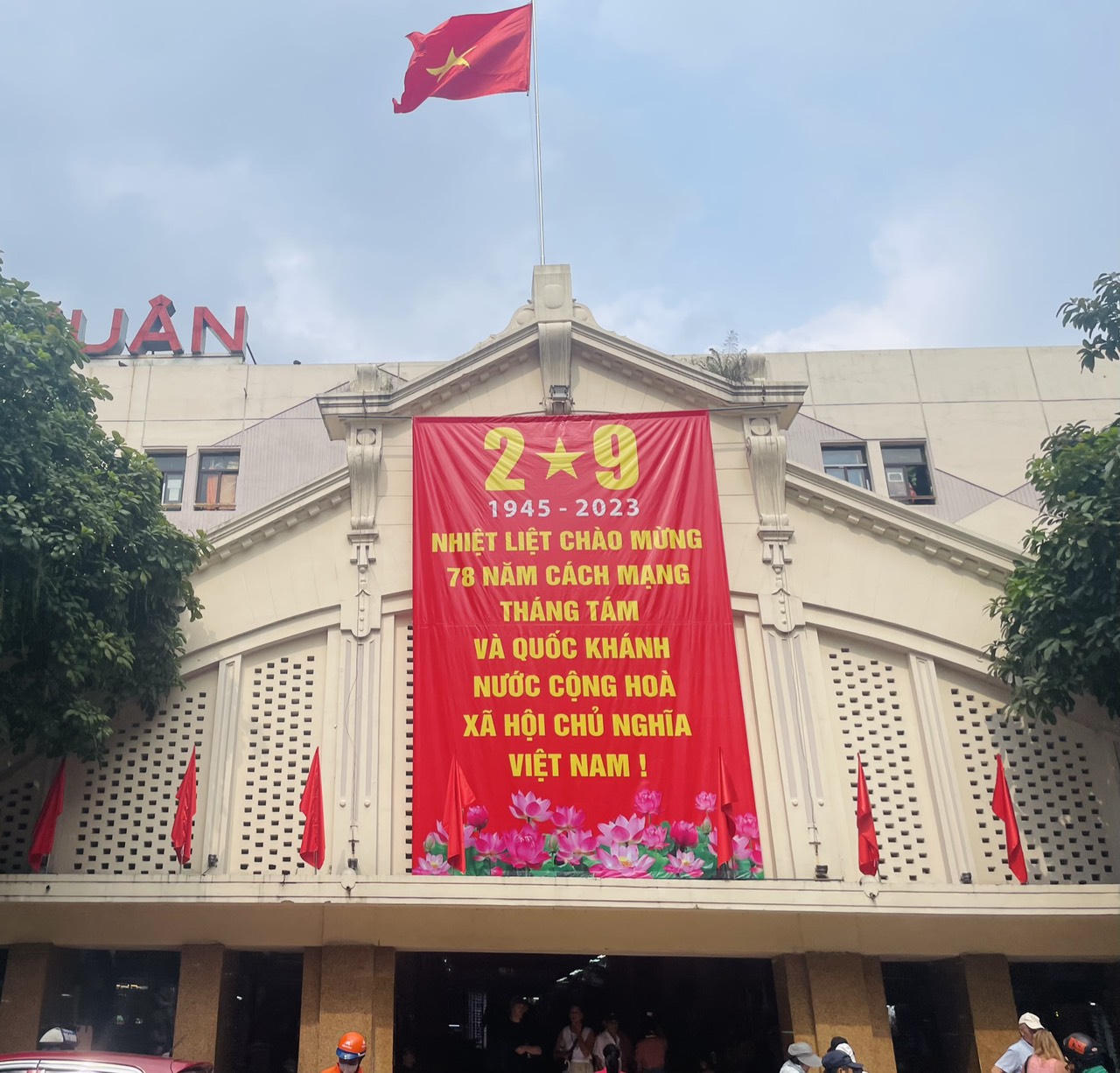 Khu vực chợ Đồng Xuân cũng tràn ngập không khí kỷ niệm.
