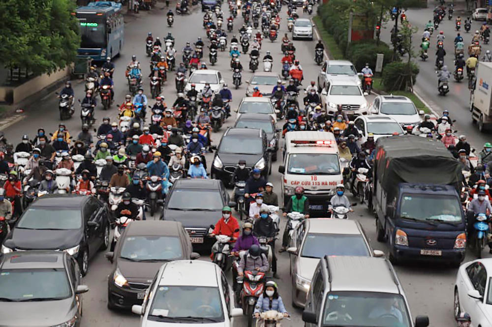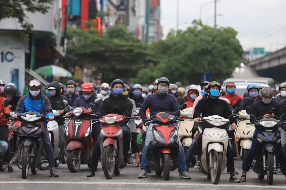 Người và phương tiện qua lại đông đúc trong ngày đầu nới lỏng giãn cách xã hội.