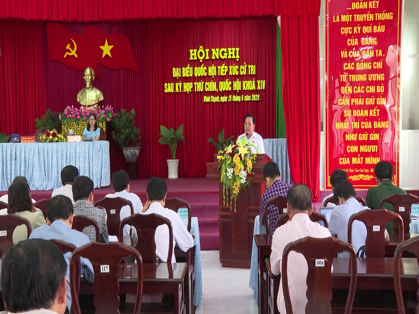 (PLVN) - Ngày 25/6, tiếp tục lịch trình tiếp xúc cử tri sau kỳ họp thứ 9, Quốc hội Khóa XIV, đoàn Đại biểu Quốc hội (ĐBQH) TP Cần Thơ đã có buổi tiếp xúc với cử tri huyện Vĩnh Thạnh. Ông Nguyễn Thanh Xuân - Phó Trưởng Đoàn chuyên trách đoàn ĐBQH TP Cần Thơ chủ trì buổi tiếp xúc.