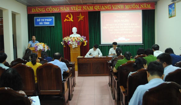 Báo cáo tại Hội nghị, ông Nguyễn Quốc Tuấn, Phó Giám đốc Sở Tư pháp, Giám đốc Trung tâm TGPL Nhà nước tỉnh Hà Tĩnh cho biết: Thực hiện Quyết định số 749/QĐ-TTg ngày 1/6/2015 của Thủ tướng Chính phủ, Sở Tư pháp Hà Tĩnh đã trình UBND tỉnh Hà Tĩnh ký ban hành Kế hoạch số 467/KH-UBND ngày 30/9/2015 về thực hiện Đề án đổi mới công tác TGPL giai đoạn 2015-2025 trên địa bàn Hà Tĩnh. Qua 5 năm thực hiện đề án công tác TGPL có nhiều chuyển biến tích cực; được các cấp, ngành, địa phương đánh giá cao.
