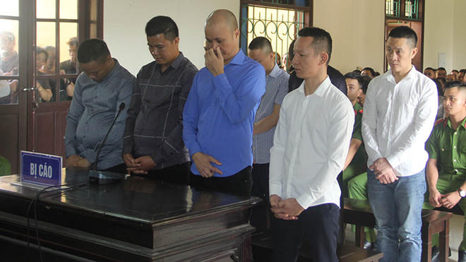 Theo bản án sơ thẩm số: 46/2019/HSST ngày 11/10, bị cáo cầm đầu vụ án là Nguyễn Tùng Lâm (34 tuổi, trú tại phường Sông Trí, thị xã Kỳ Anh, Hà Tĩnh) bị tuyên phạt 8 năm tù về tội giết người; 7 bị bị cáo còn lại tham gia hỗ trợ Lâm lãnh từ 4 năm đến 7 năm tù về tội giết người và cố ý hủy hoại tài sản, gồm: Nguyễn Quốc Thảo (31 tuổi, em trai Lâm), Đào Văn Cảnh và Phạm Anh Tuấn (đều 39 tuổi, trú cùng phường với Lâm), Nguyễn Văn Giáp (25 tuổi, trú tại huyện Cẩm Xuyên, Hà Tĩnh), Trần Công Tiến (42 tuổi), Đào Văn Lượng (22 tuổi) và Võ Việt Hưng (27 tuổi, cùng trú tại huyện Kỳ Anh, Hà Tĩnh).