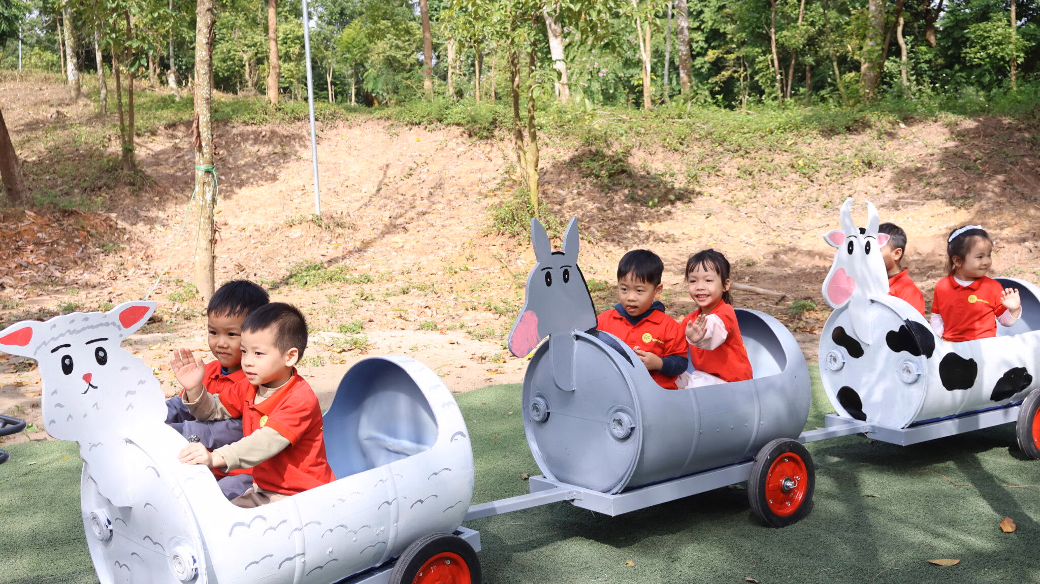 Ngay trong ngày khai trương, điểm du lịch đã đón tiếp hàng trăm em nhỏ đến từ các trường mầm non trên địa bàn.