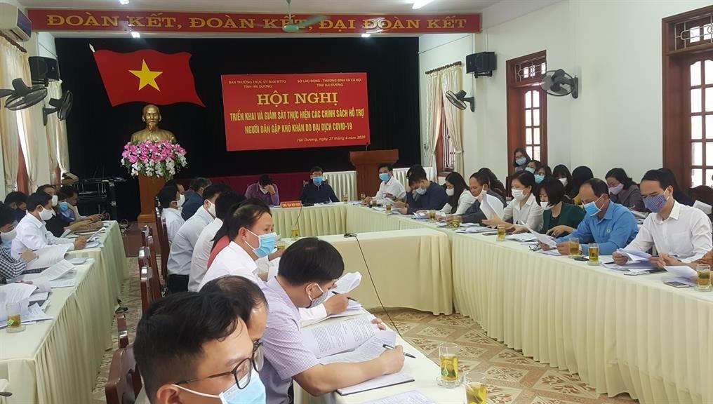 Mới đây, ngay sau khi Hội nghị trực tuyến toàn quốc quán triệt, triển khai, hướng dẫn giám sát thực hiện Nghị quyết 42/NQ-CP ngày 9/4/2020 của Chính phủ về các biện pháp hỗ trợ người dân gặp khó khăn do đại dịch Covid-19 của Ủy ban Trung ương Mặt trận Tổ quốc Việt Nam phối hợp với Bộ Lao động, Thương binh và Xã hội tổ chức diễn ra vào chiều 27/4 kết thúc, các đại biểu tham dự tại điểm cầu tỉnh Hải Dương đã thảo luận để phản ánh những khó khăn, vướng mắc và đề xuất hướng triển khai hiệu quả Nghị quyết 42 của Chính phủ trên địa bàn tỉnh.