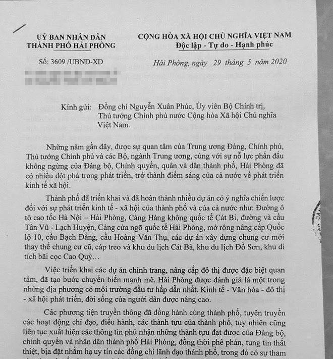 Trong văn bản, UBND Hải Phòng đề nghị Thủ tướng quan tâm, chỉ đạo cơ quan chức năng xử lý, làm rõ sự việc.