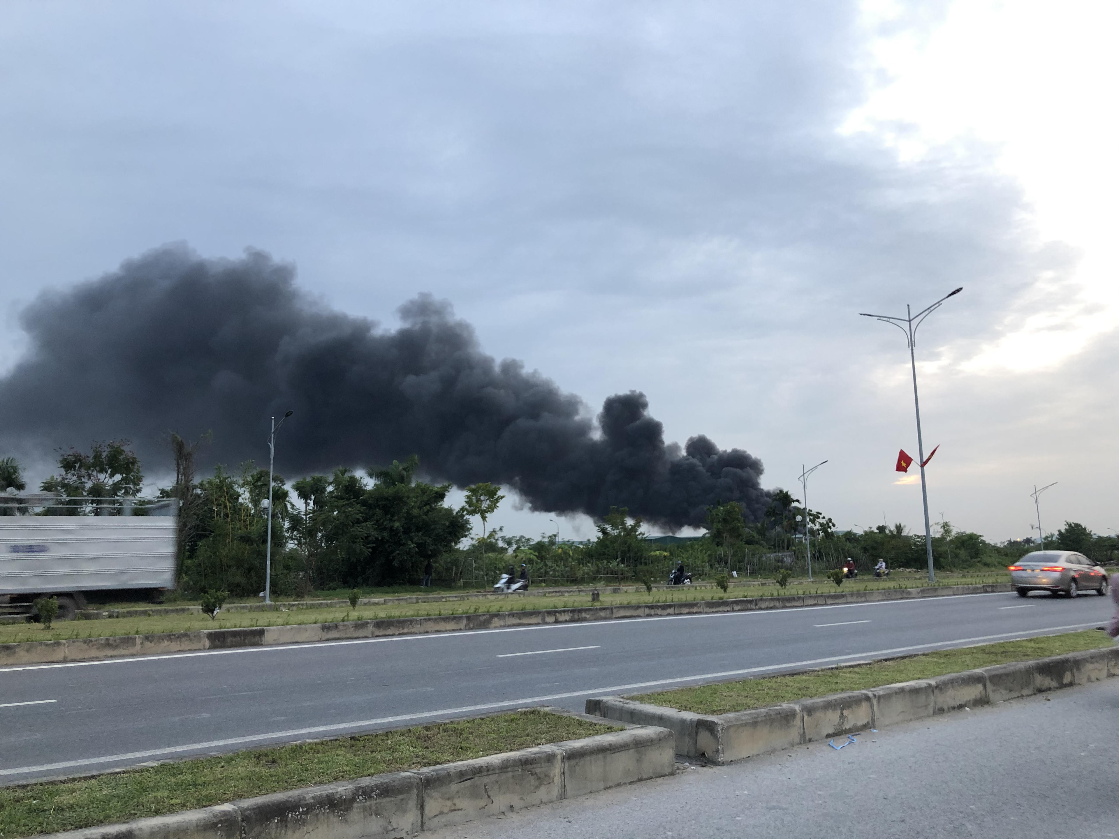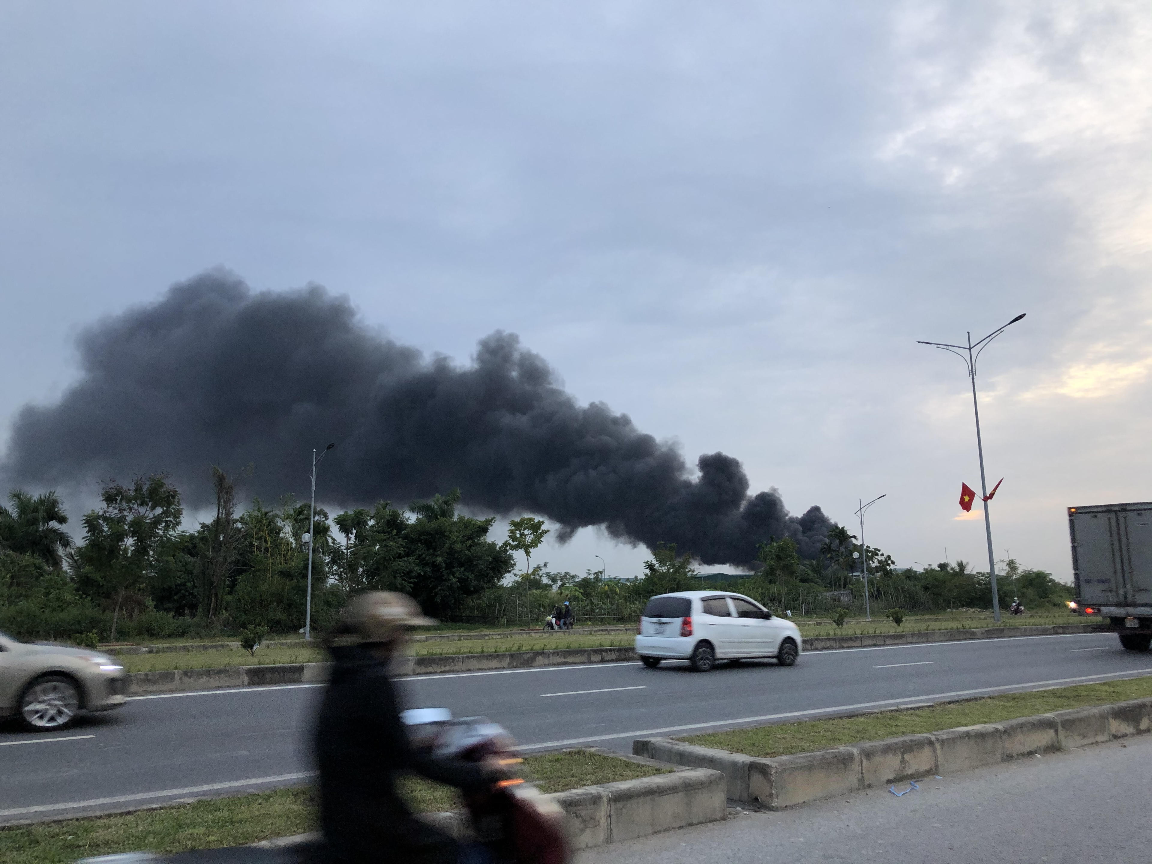 Đám cháy bùng lên ngày một dữ dội kéo theo khói đen cuồn cuộn bốc lên, thu hút sự chú ý của người dân đi đường. Tại khu vực xảy ra đám cháy, một máy xúc vẫn hoạt động bình thường.