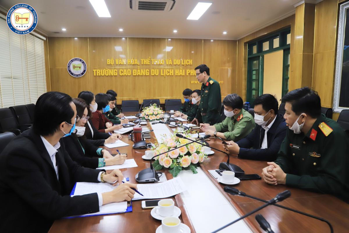Lãnh đạo Trường Cao đẳng du lịch Hải Phòng họp bàn với ngành chức năng về công tác đón công dân Việt Nam từ nước ngoài về cách ly tại khu ký túc xá sinh viên của trường.