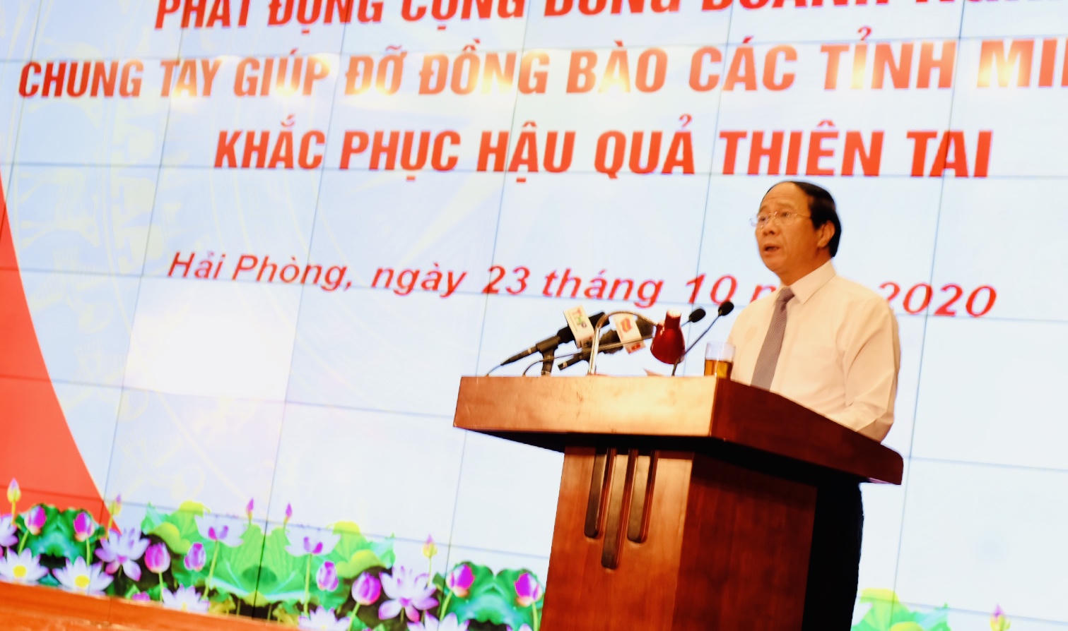 Thay mặt lãnh đạo TP, Chủ tịch UBND TP Hải Phòng ghi nhận bày tỏ sự cảm ơn chân thành tới các nhà hảo tâm, các doanh nghiệp đã chung tay cùng TP có những hành động thiết thực để giúp đỡ các tỉnh miền Trung đang gặp thiên tai khốc liệt. Với nhũng tình cảm thiết thực, đầy trách nhiệm đã kịp thời động viên, góp sức cho đồng bào miền Trung khắc phục hậu quả do bão lũ gây ra, ổn định cuộc sống.