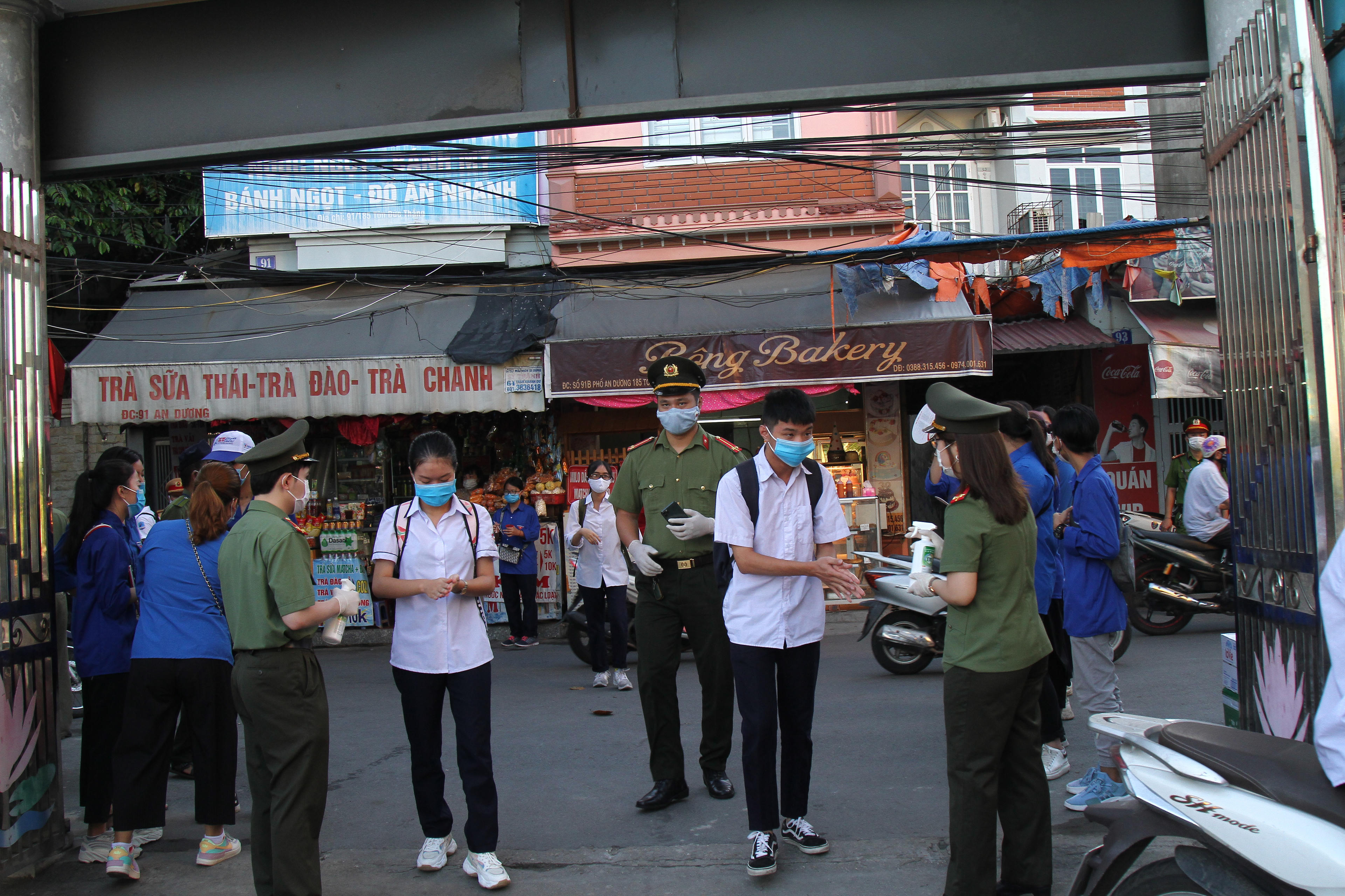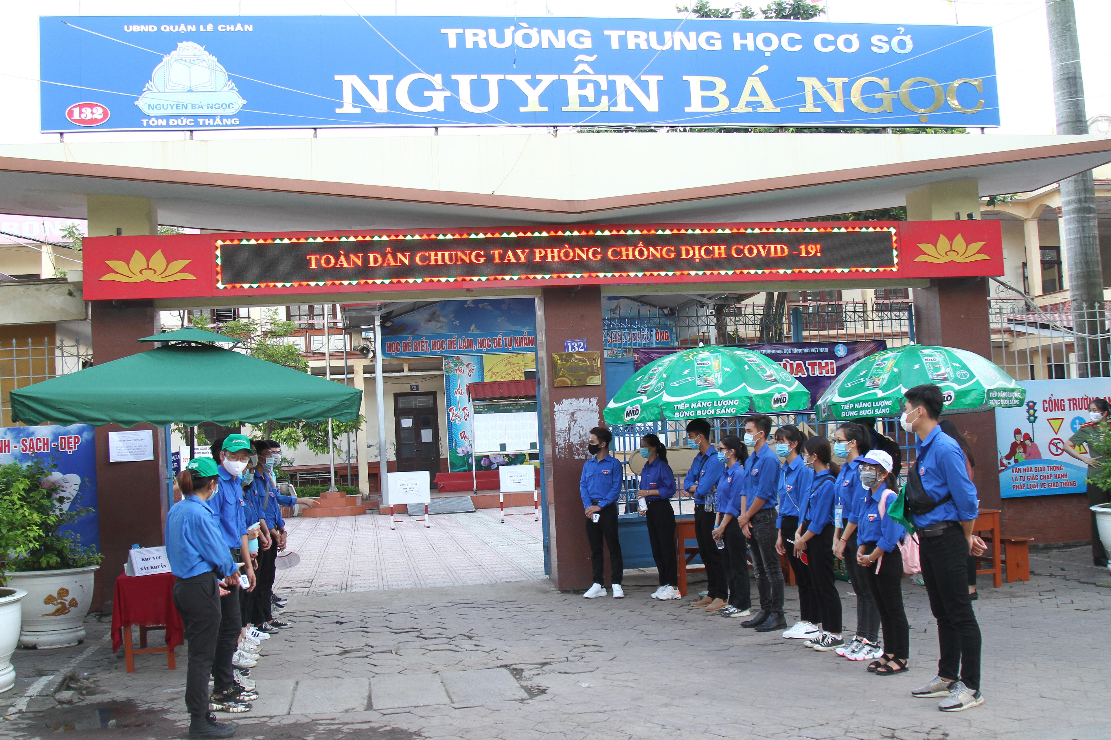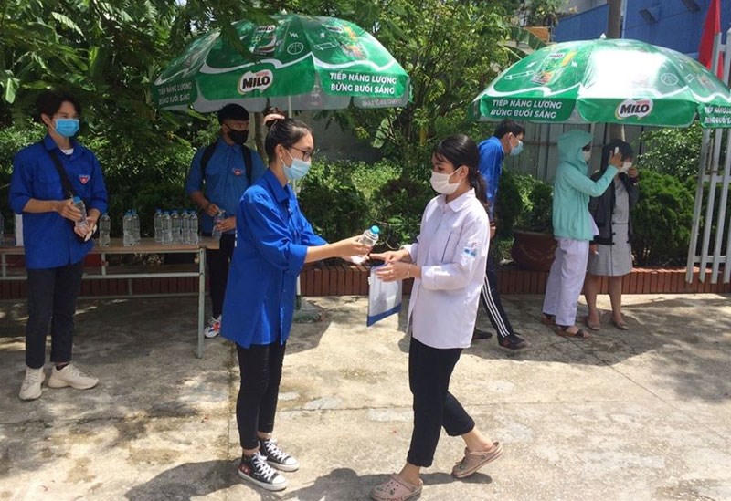 Để tiếp sức cho các thí sinh tham gia kỳ thi, tại một số điểm thi, thanh niên tình nguyện Trường Đại học Hàng hải Việt Nam phát đồ uống miễn phí các thí sinh, thanh niên tình nguyện Công an TP phát khẩu trang miễn phí thí sinh. Không chỉ tiếp nhắc nhở đeo khẩu trang, phát đồ uống, lực lượng thanh niên tình nguyện còn cùng cán bộ phục vụ điểm thi đo thân nhiệt cho thí sinh.