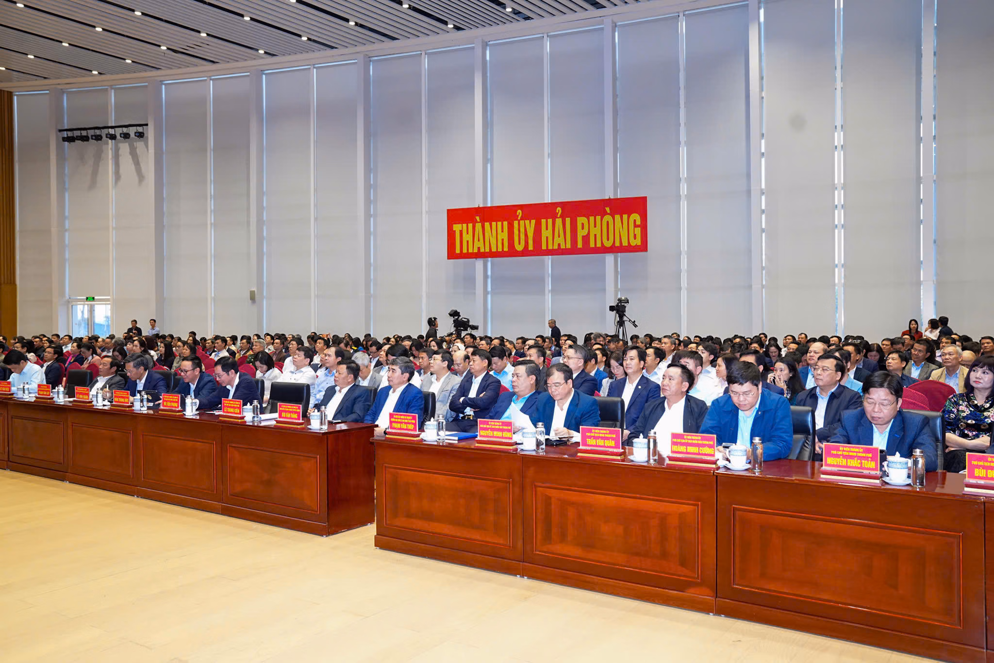 Tại điểm cầu Hải Phòng, các lãnh đạo thành phố cùng đông đảo cán bộ, đảng viên tham dự hội nghị. Việc quán triệt hai nghị quyết quan trọng được xác định là nhiệm vụ chính trị trọng tâm, tạo cơ sở để các địa phương xây dựng chương trình hành động cụ thể, đưa chủ trương của Đảng nhanh chóng đi vào cuộc sống.