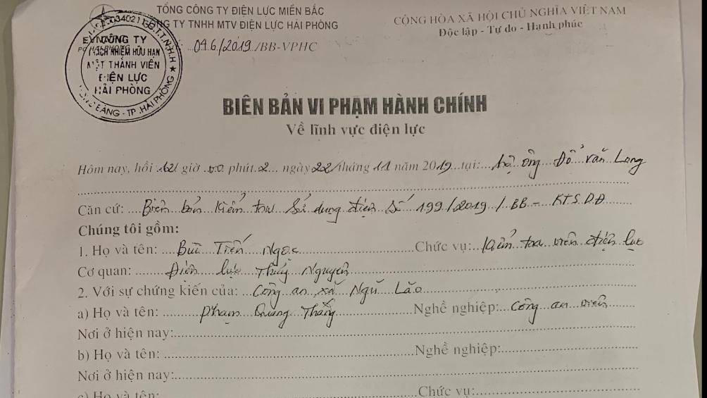 Hiện, Công ty Điện lực Hải Phòng đã có văn bản gửi các cơ quan chức năng để đề nghị kiểm tra, xử lý vụ việc theo quy định pháp luật.