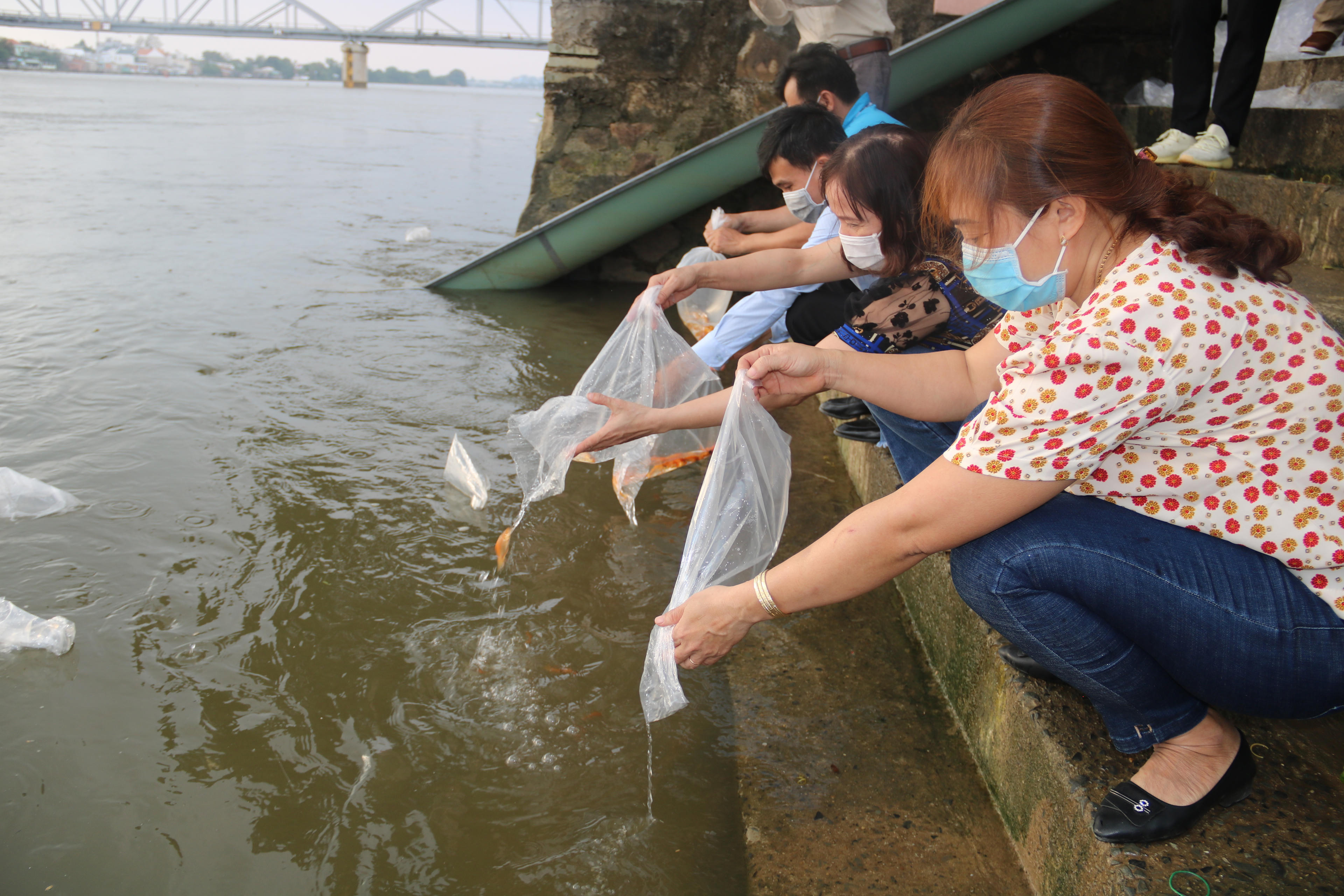 Thả cá xuống sông Đồng Nai để cầu bình an