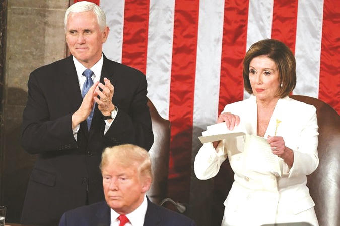 Đặc biệt, trong một động thái gây sốc, bà Pelosi đã xé bản sao bài phát biểu của ông Trump ngay trên sóng truyền hình. Trong suốt bài phát biểu, ông Trump không một lần nhắc đến từ luận tội.