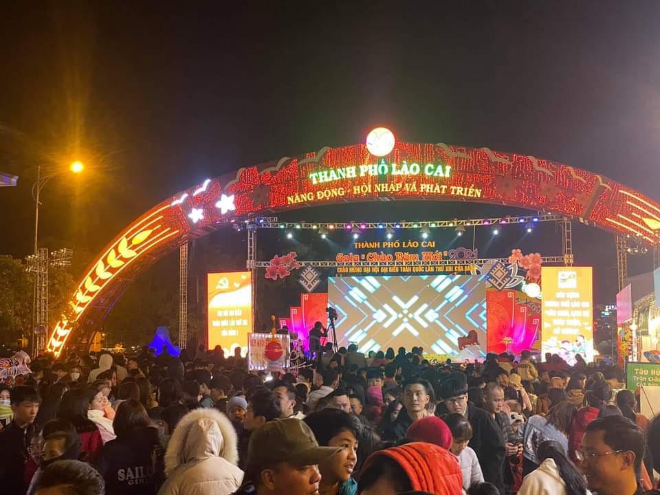 Từ chiều cùng ngày, hàng nghìn người dân và du khách thập phương đã đổ về trung tâm thành phố Lào Cai để cùng thưởng thức các chương trình văn nghệ chào đón năm mới.