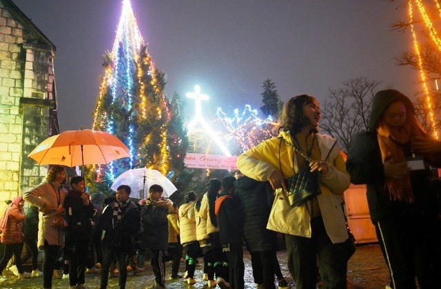 Tại trung tâm thị xã Sa Pa cũng có rất nhiều du khách tìm đến phố Cầu Mai, Xuân Viên, khu vực nhà thờ đá đón năm mới và trải nghiệm giá lạnh 3 độ C.