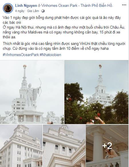 Còn với nhiếp ảnh gia Dạ Miêu, kiến trúc tân cổ điển sang trọng với nền sơn trắng chủ đạo tại đại học tinh hoa VinUni – biểu tượng đặc trưng của “Đô thị Giáo dục” Vinhomes Ocean Park khiến cô đắm say ngay từ lần đầu tiên đặt chân đến. Dạ Miêu lập tức chia sẻ điểm sống ảo “không góc chết” trên trang cá nhân với niềm tâm đắc : "Ngay tại Hà Nội, chỉ 15 phút chạy xe, bỗng dưng phát hiện khung cảnh đẹp tựa buổi chiều ở trời Âu, nắng vàng như Maldives, đứng vào là có ngay tấm ảnh 10 điểm".