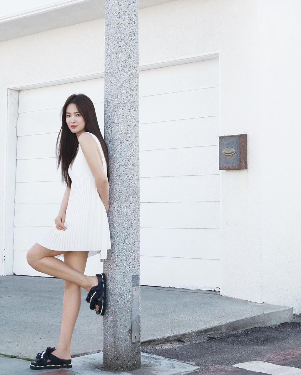 Nữ diễn viên Song Hye Kyo để lộ vòng eo con kiến, vòng một gợi cảm và đôi chân nuột nà trong những bức ảnh mới.