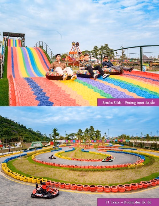 “Samba Slide – Đường trượt đa sắc” mở ra thế giới màu sắc rực rỡ, với thiết kế uốn lượn, được làm nổi bật như những ánh cầu vồng tươi sáng, “Đường trượt đa sắc” đưa người chơi bước vào một chuyến phiêu lưu kỳ thú, nơi ánh sáng, âm nhạc và niềm vui hòa quyện tạo cảm giác như lạc vào một vùng đất lễ hội sôi động giữa lòng khuôn viên giải trí.