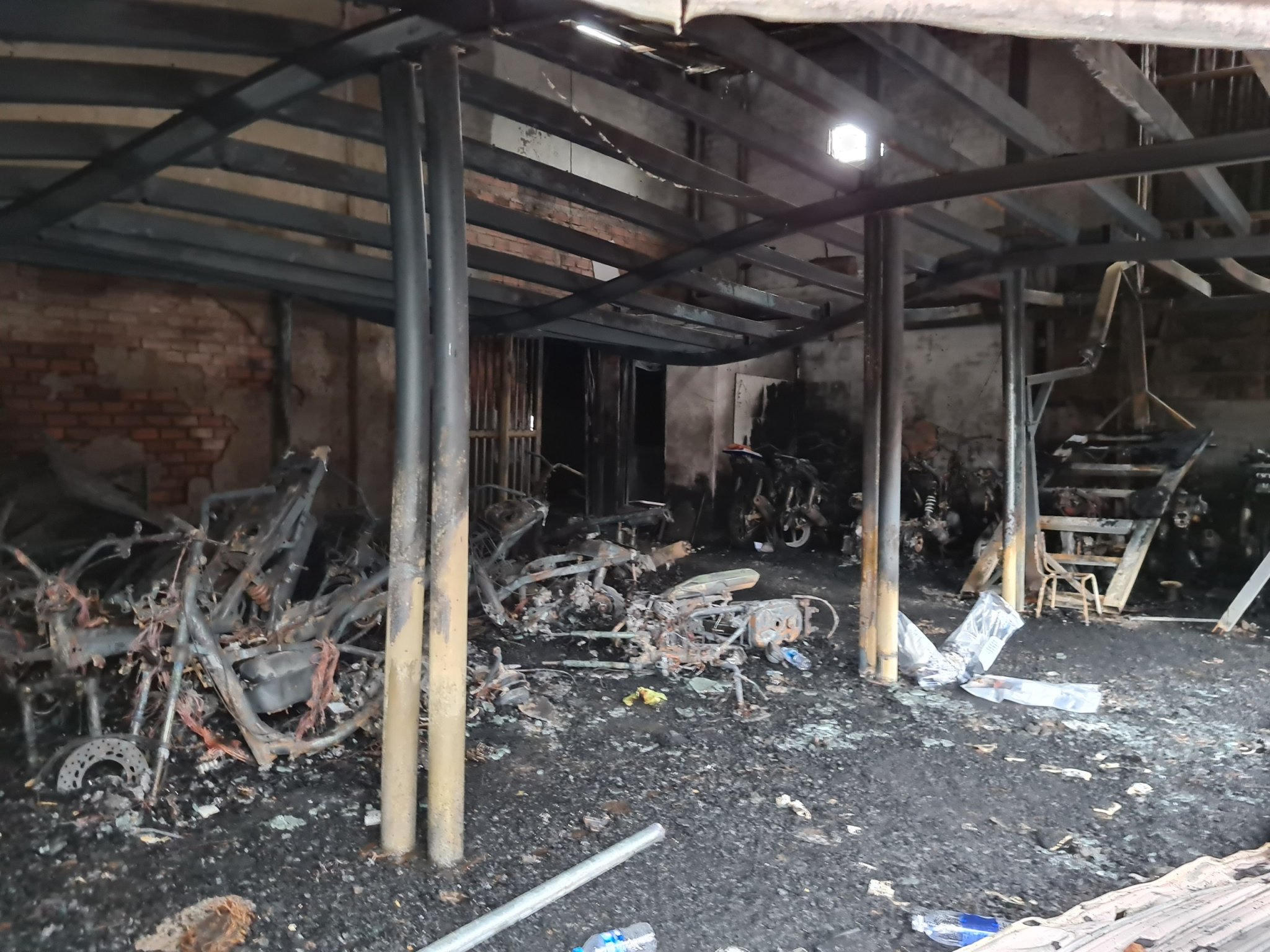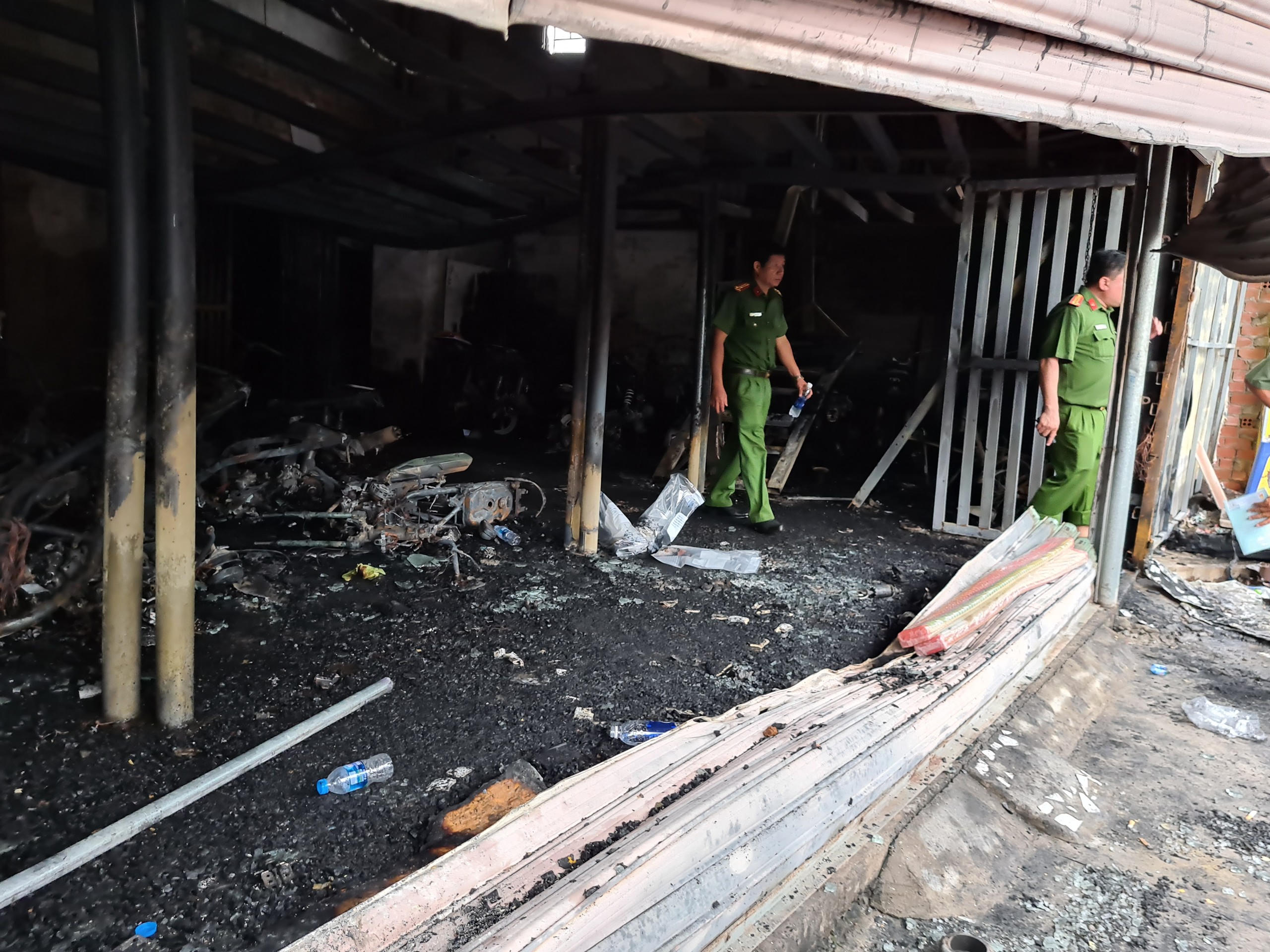 (PLVN) - Tiệm cầm đồ tại phường Tân Đông Hiệp, TP Dĩ An, Bình Dương phát cháy dữ dội khiến 3 người mắc kẹt bên trong, tử vong. Tại hiện trưởng, nhiều xe máy cháy trơ khung, gác sắt bị lửa uốn cong, ám muội đen...