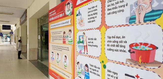 Những áp phích tuyên truyền chống dịch Covid-19 được dán ở khắp các bến xe.