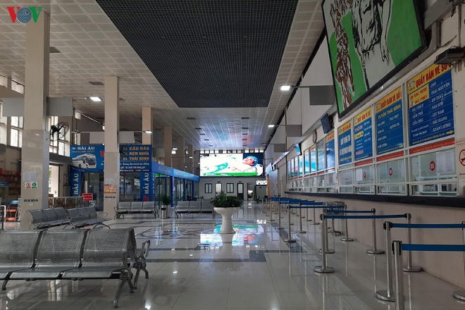 Khu vực nhà chờ bến xe Gia Lâm vắng không bóng người. Ảnh VOV.