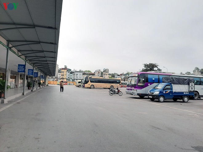 Số phương tiện trên bến xe Gia Lâm chỉ đếm trên đầu ngón tay. Ảnh VOV.