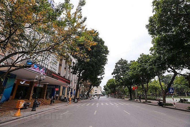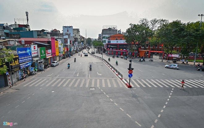 Một tuyến phố thủ đô vắng vẻ như ngày Tết. Ảnh Lao động.