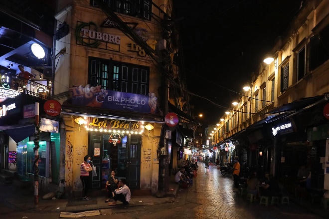 Phố Tạ Hiện về đêm không còn nhộn nhịp như trước. Ảnh Lao động.