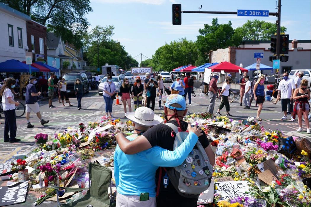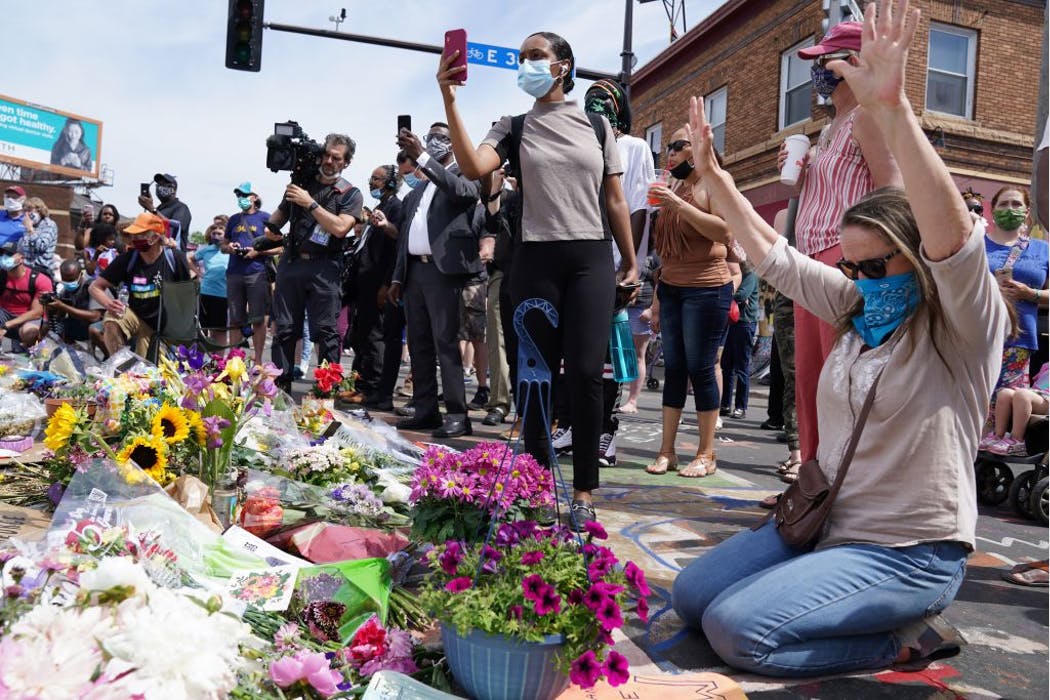 Mọi người quỳ gối và cúi đầu tưởng niệm George Floyd.
