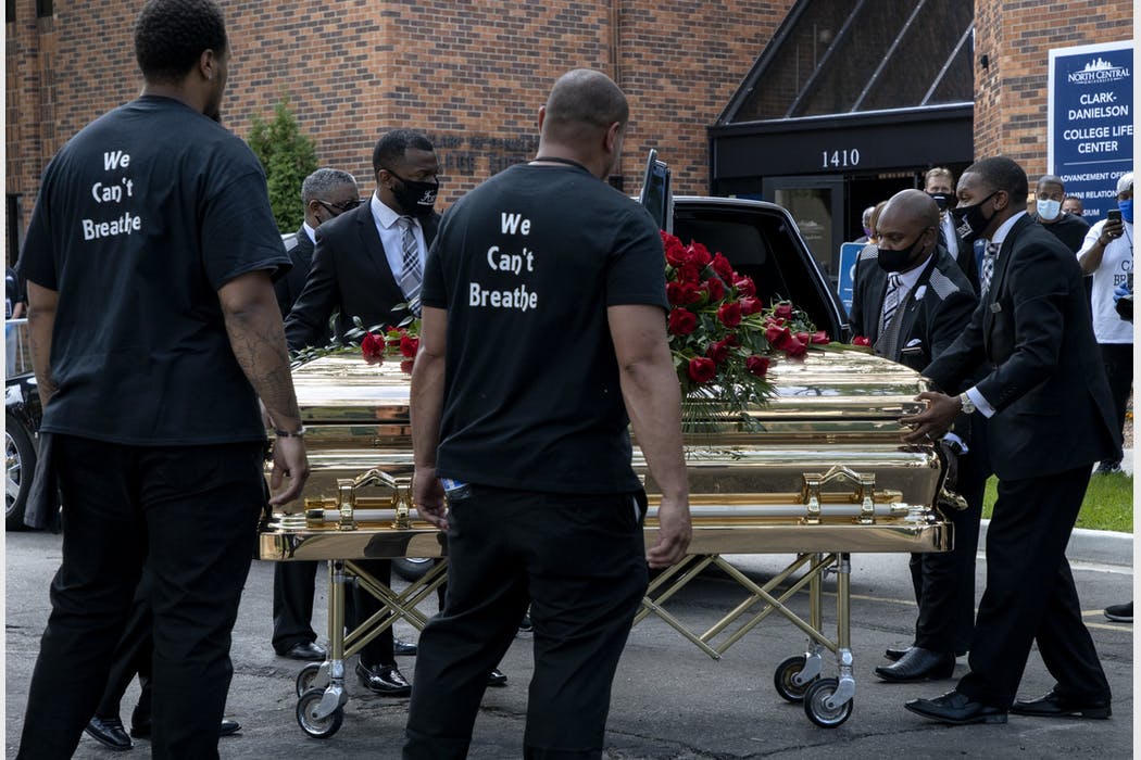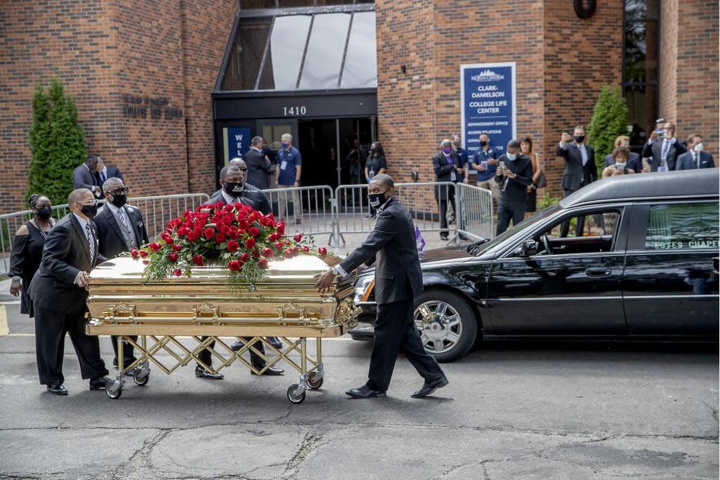 Quan tài của George Floyd đã được dưa vào xe tang.