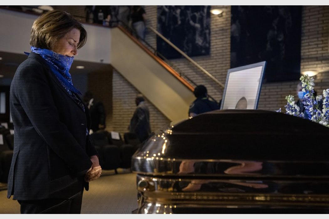 Thượng nghị sĩ Amy Klobuchar đứng trước quan tài George Floyd.