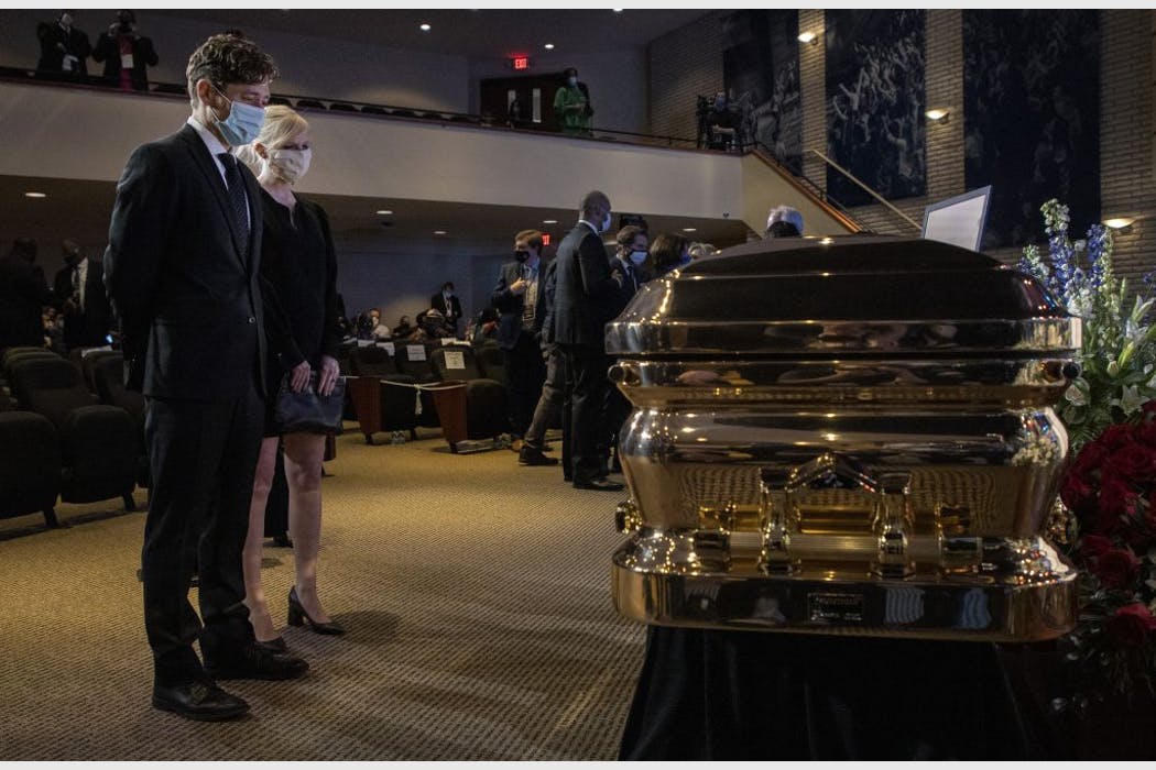 Thị trưởng thành phố Minneapolis Jacob Frey và vợ Sarah Clarke trước quan tài George Floyd.