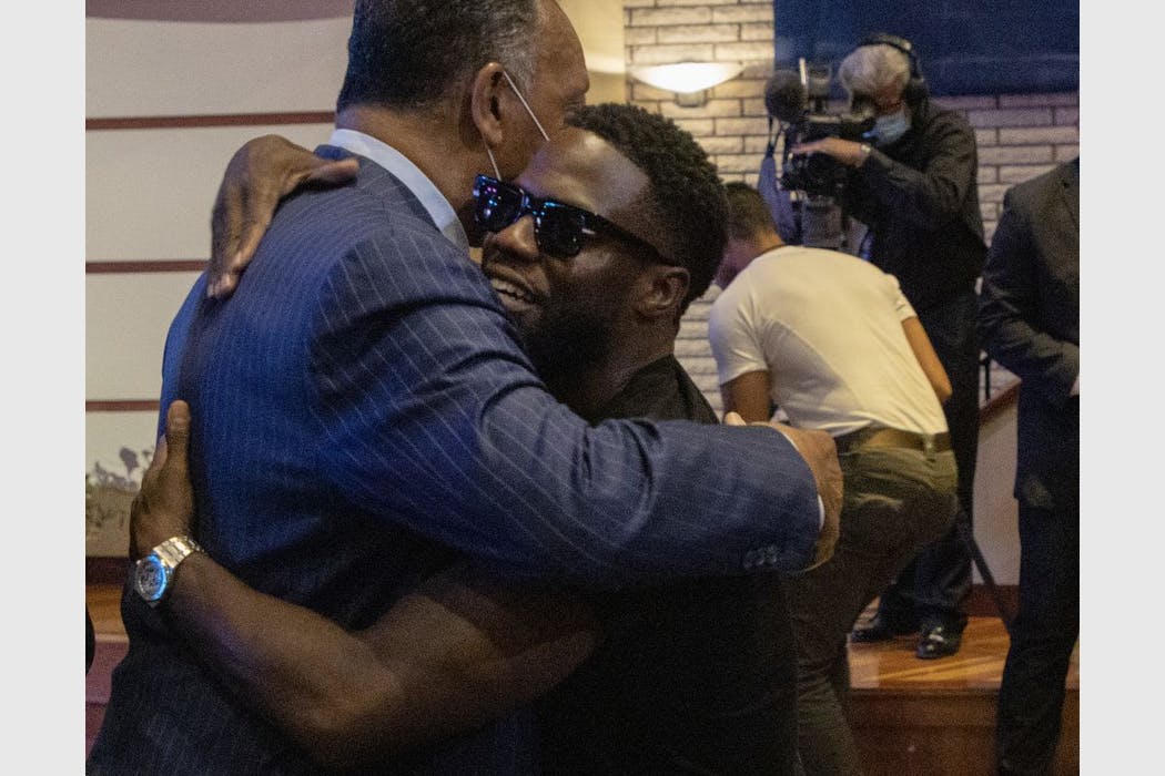 Nhà chính trị người Mỹ Jesse Jackson ôm nghệ sĩ hài Kevin Hart.